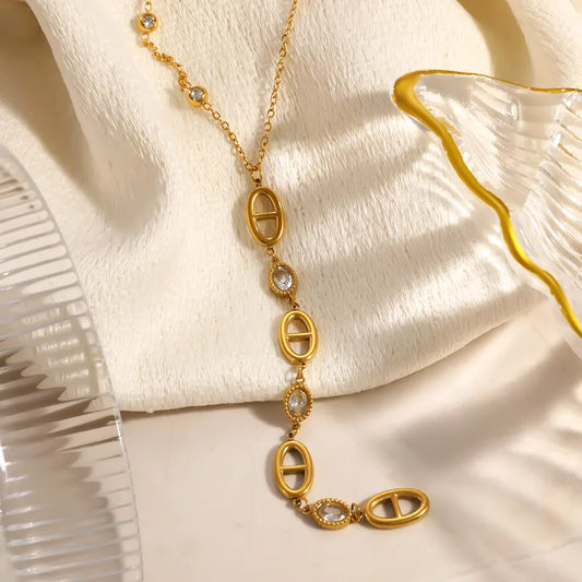 T Bar Gems 18K Gold Plated 304 Stainless Steel Necklace