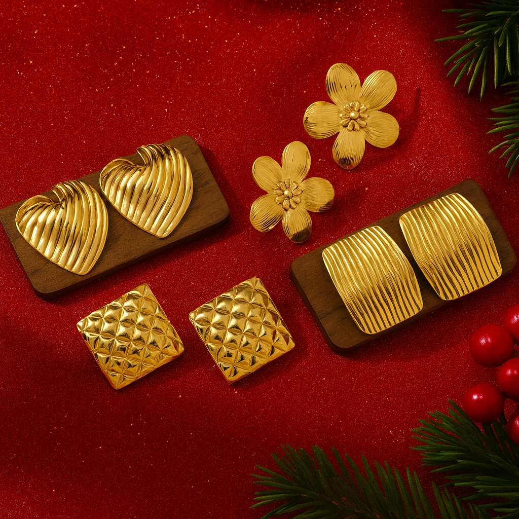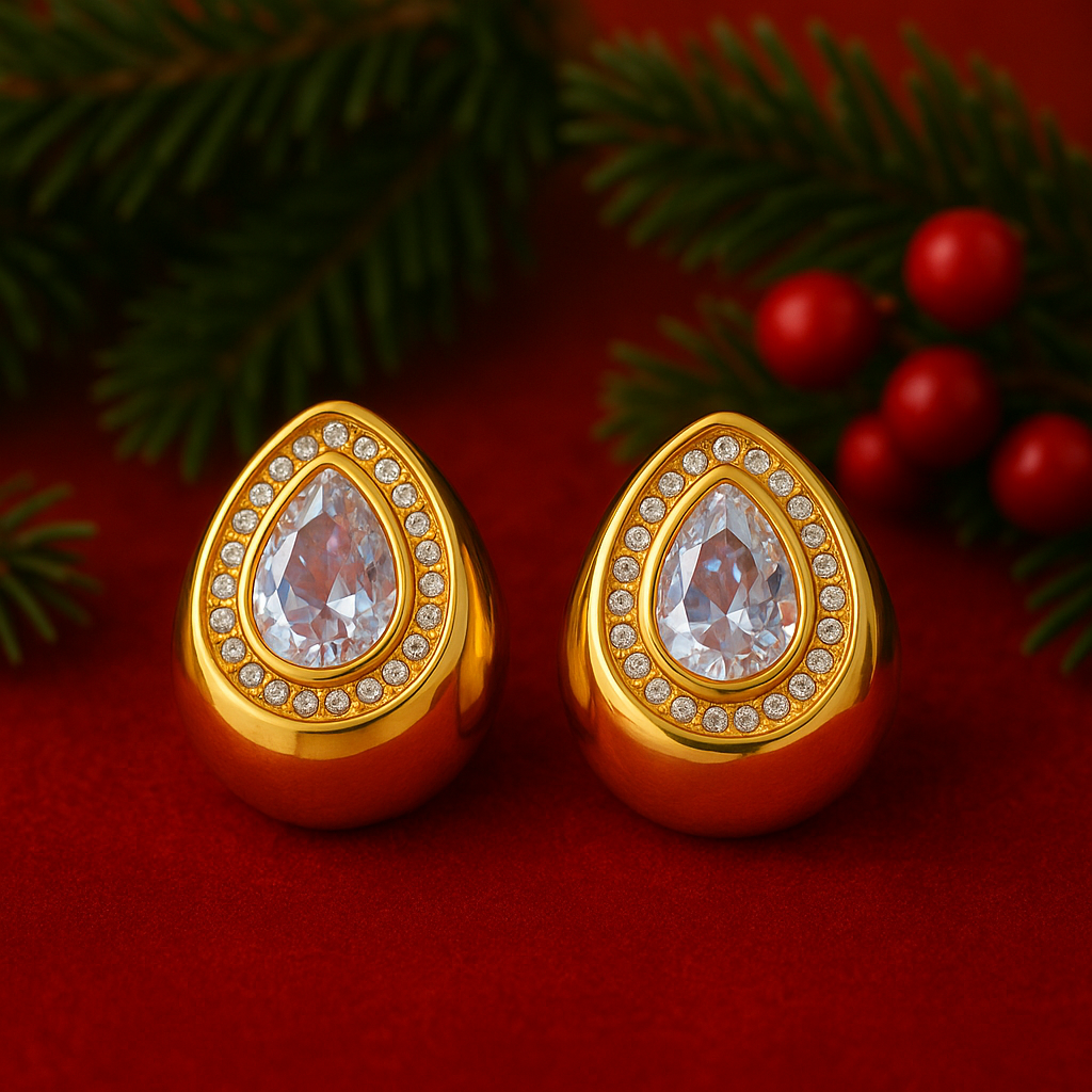 Water Droplets L 304 Stainless Steel 18K Gold Plated Backs Ear Studs