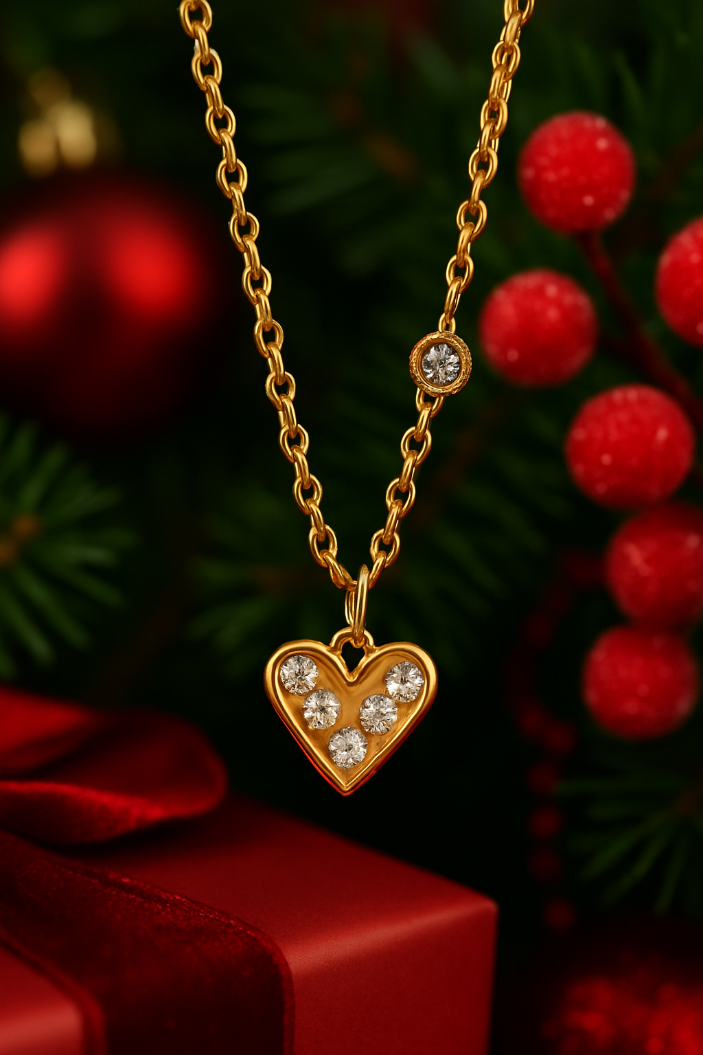 Heart Shape 316L Stainless Steel 18K Gold Plated 3D Pendant Necklace