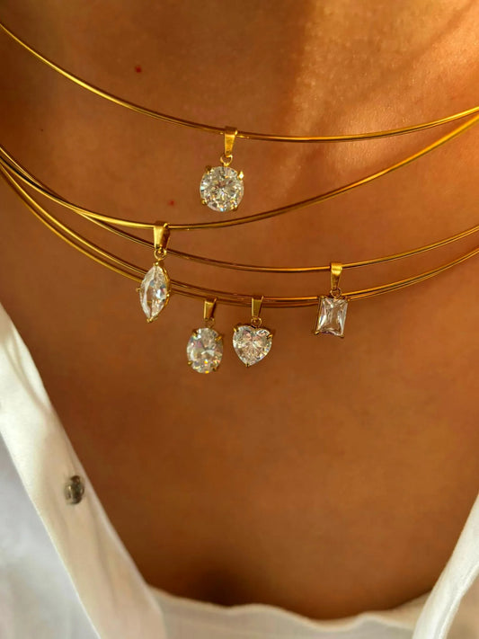 Lady Shiny Heart Shape 316L Stainless Steel Zircon 18K Gold Plated Irregular Choker