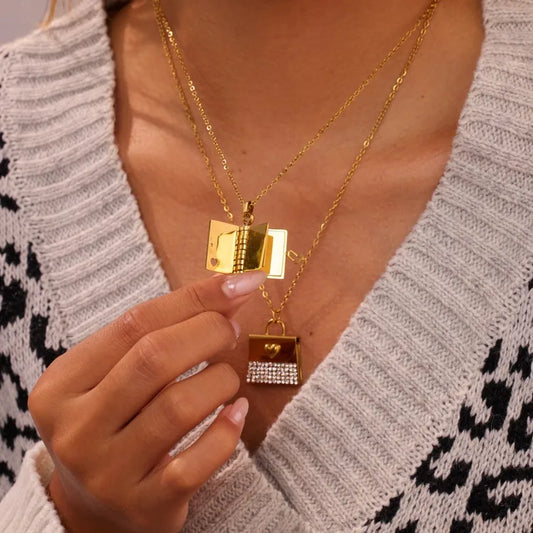 Diamond Shackle Gold Geometric Heart Shape 304 Stainless Steel Zircon 18K Gold Plated Plating Inlay Cable Chain Multi Charms Necklace