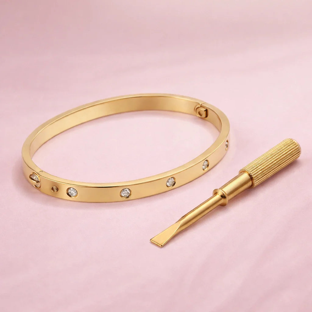 Retro Classic Style Geometric 304 Stainless Steel 18K Gold Plated Diamond Bangle