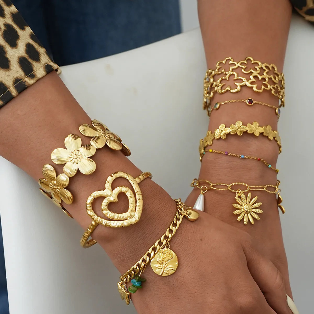 18K Gold Plated Women's Cute Retro Thick 304 Stainless Steel Bracelet