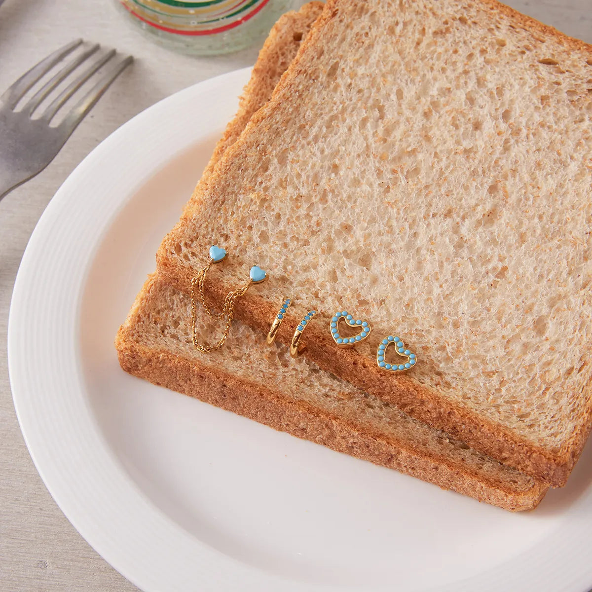 18K Gold Stainless Steel Turquoise + Zircon 3 Pairs Earring