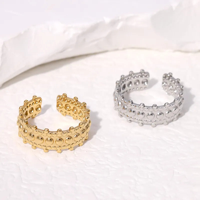 304 Stainless Steel 18K Gold Plated Retro Vintage Style Geometric Round Dots Open Rings