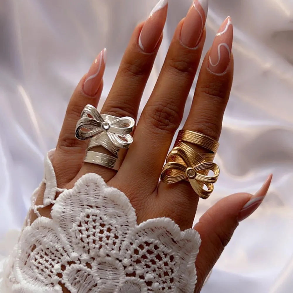 Bow Knot with Diamond 304 Stainless Steel Open Ring