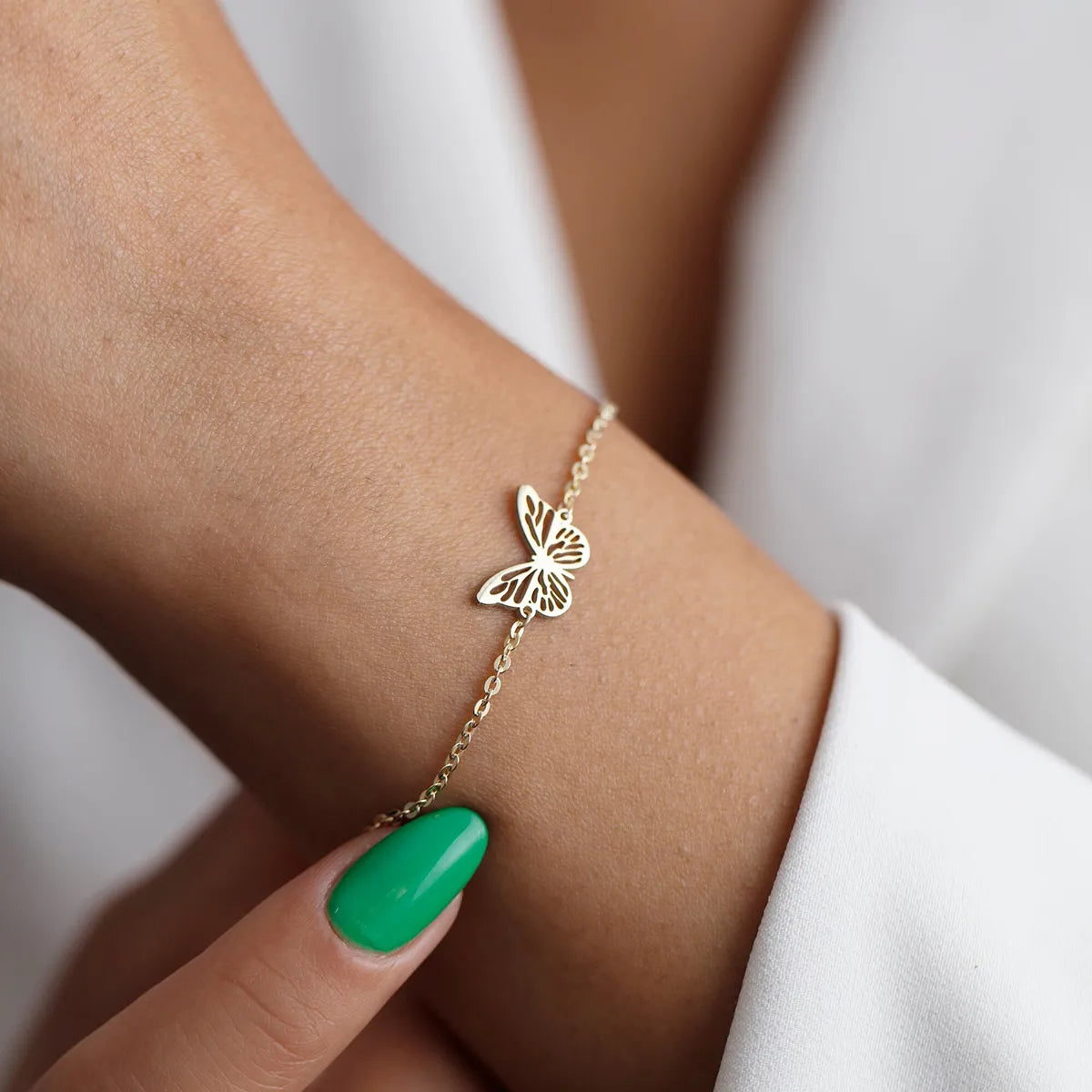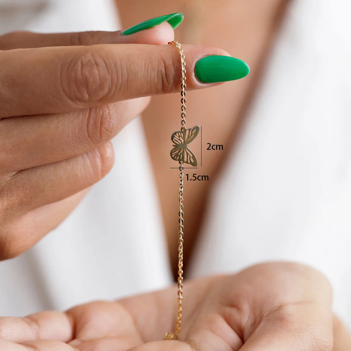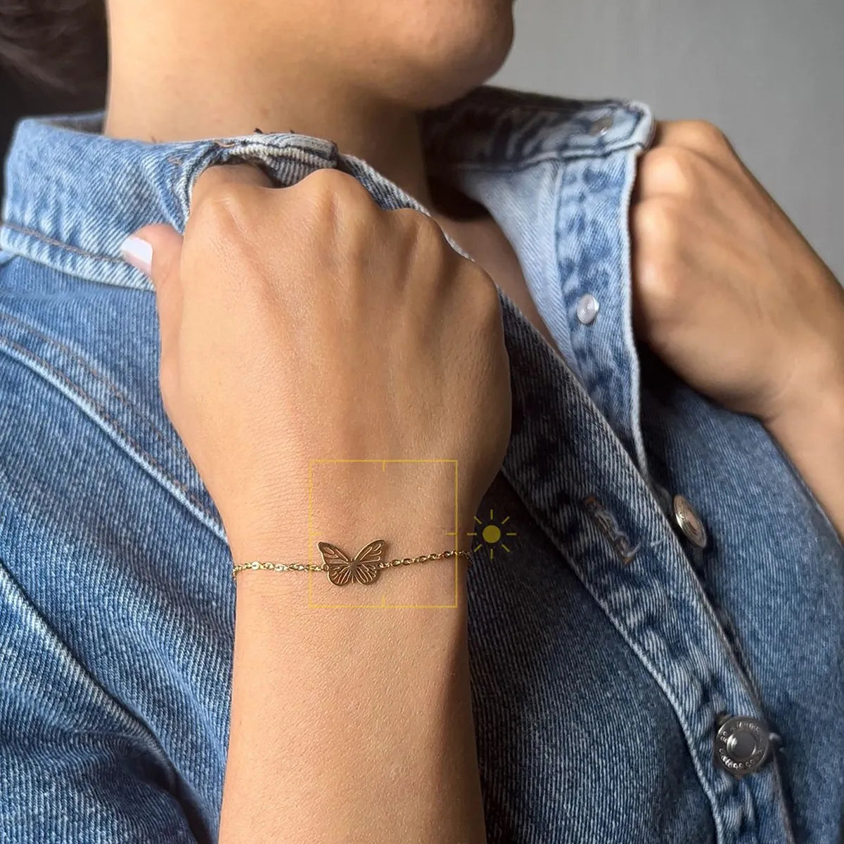 Fly high with the Butterfly bracelet! Made with durable 316 stainless steel and 18K gold plating, the butterfly charm adds a touch of whimsy to any outfit. A playful accessory for anyone who loves to spread their wings.