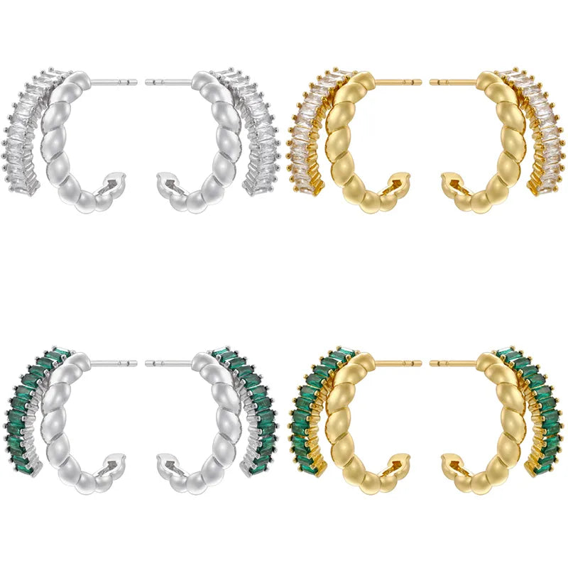 C Shape Twist Plating Inlay Copper Zircon Ear Studs