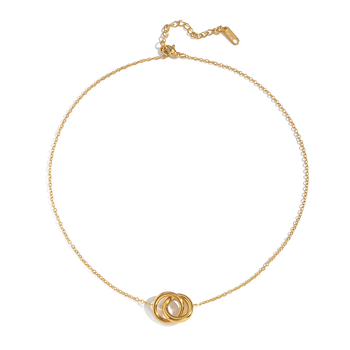 Circle Interlocking 18K Real Gold Plated 201 Stainless Steel Waterproof Necklace