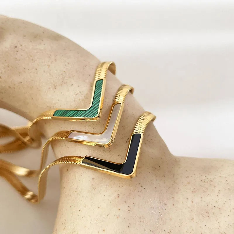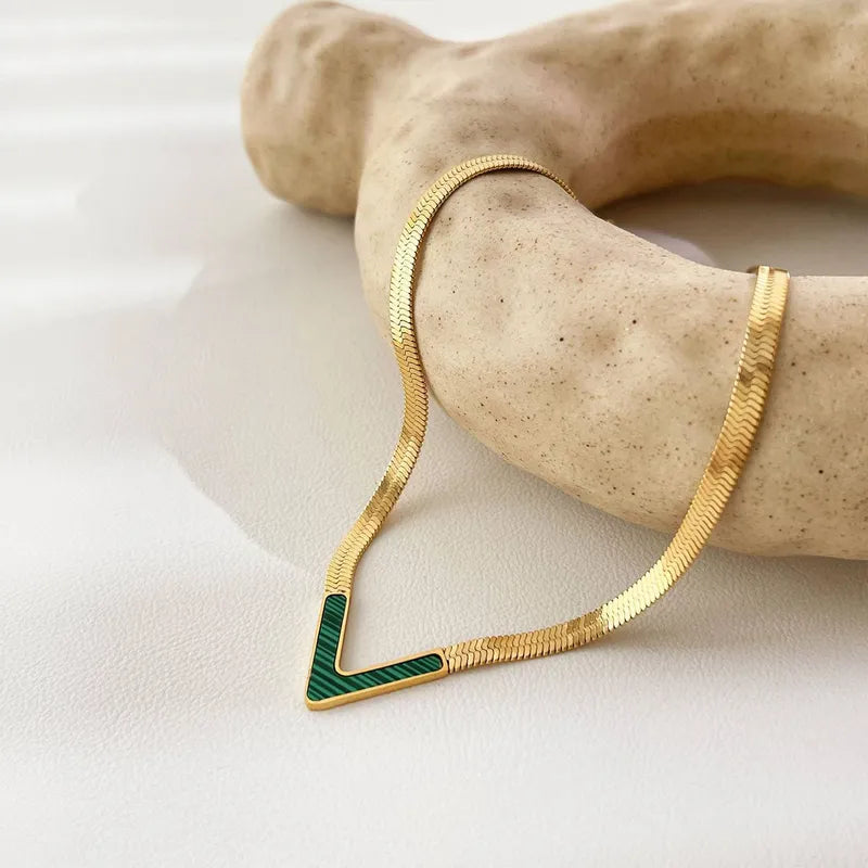 Classic Style V Shape Titanium Steel Plating 18k Gold Plated Necklace