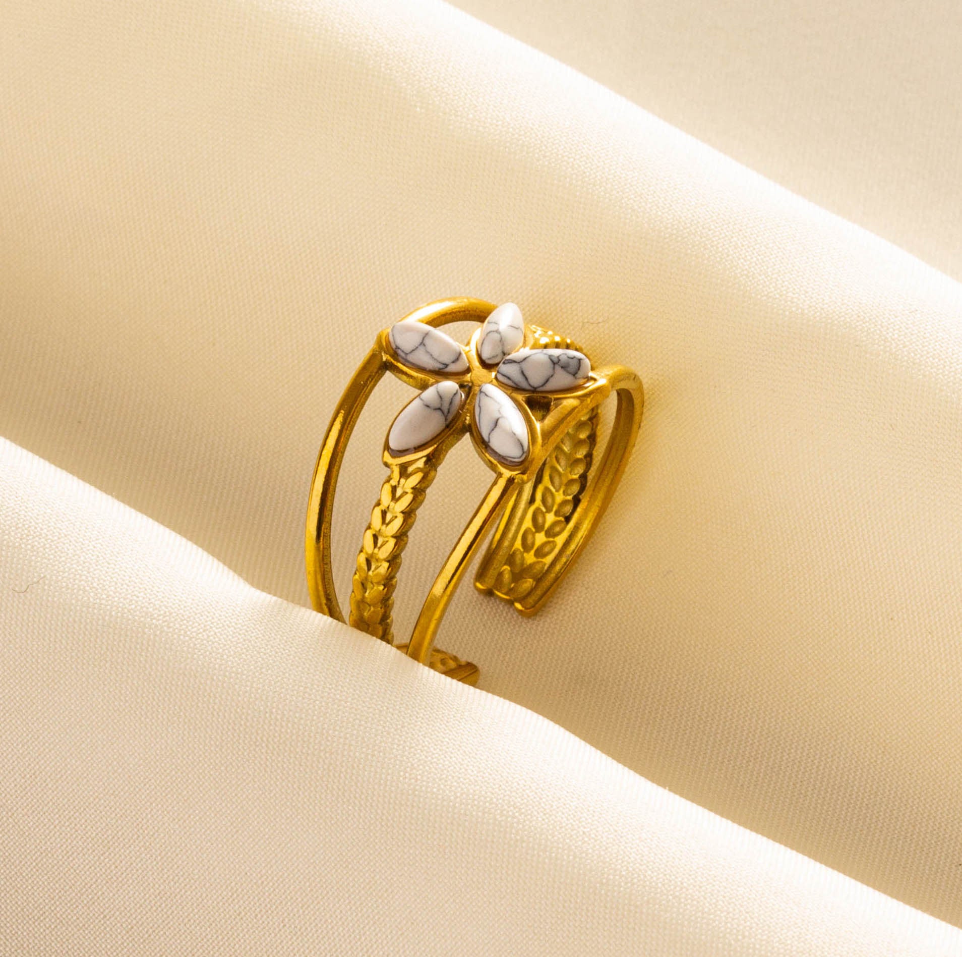 Classical Vintage Style Classic Style Inlay Geometric Flower Artificial Gemstones Imitating stone Open Rings