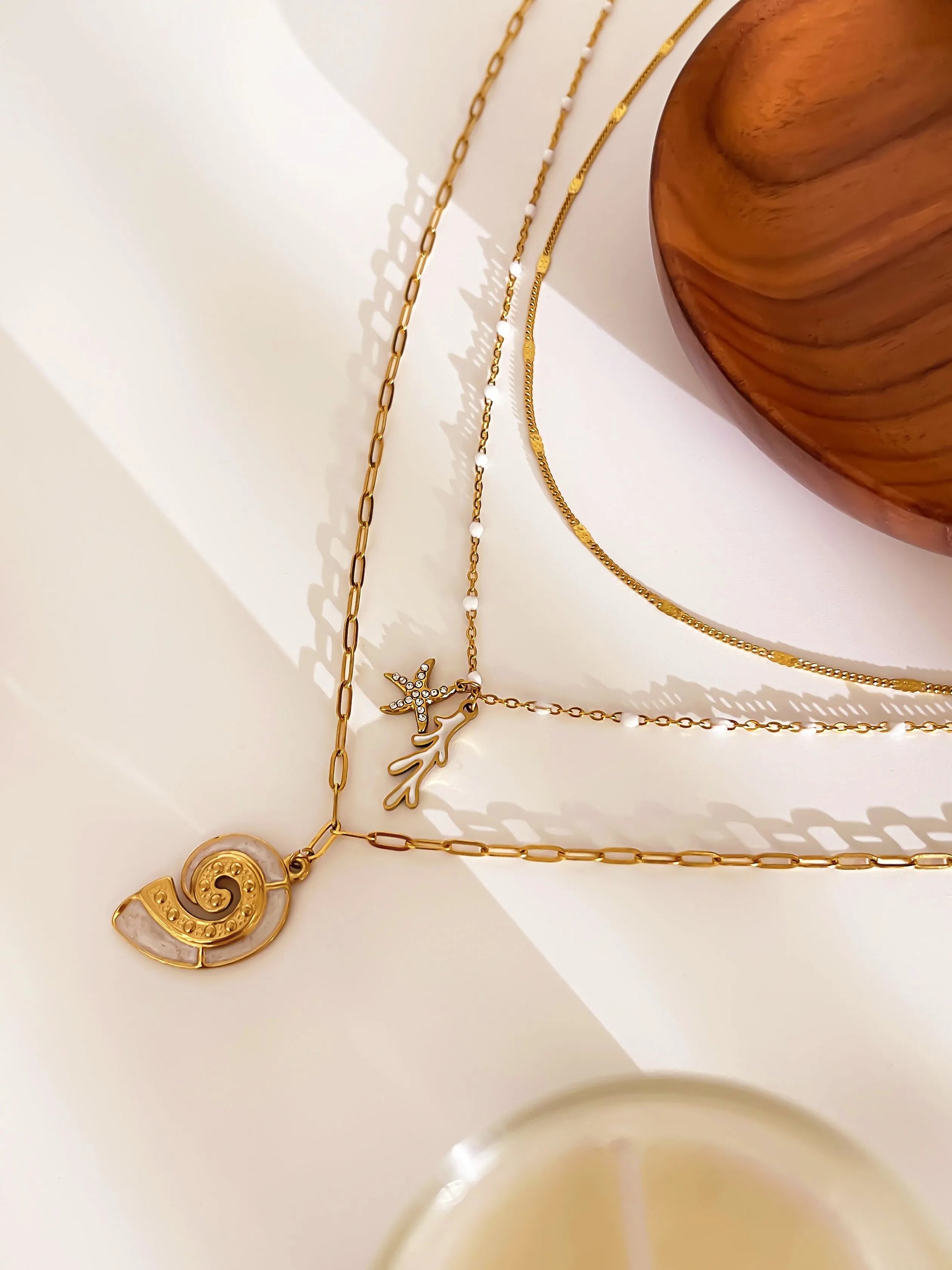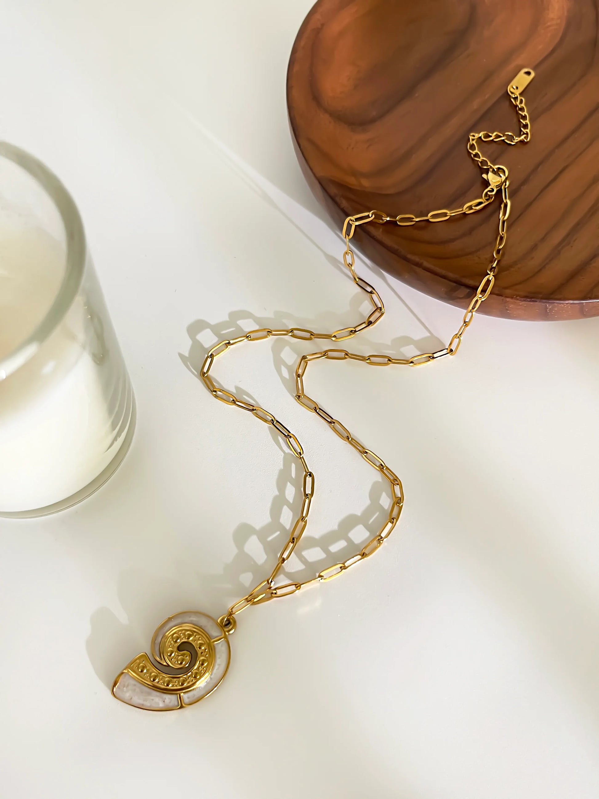 Conch Shell 316L Stainless Steel Rhinestones Freshwater Pearl 18K Gold Plated Inlay Stainless Steel Necklace