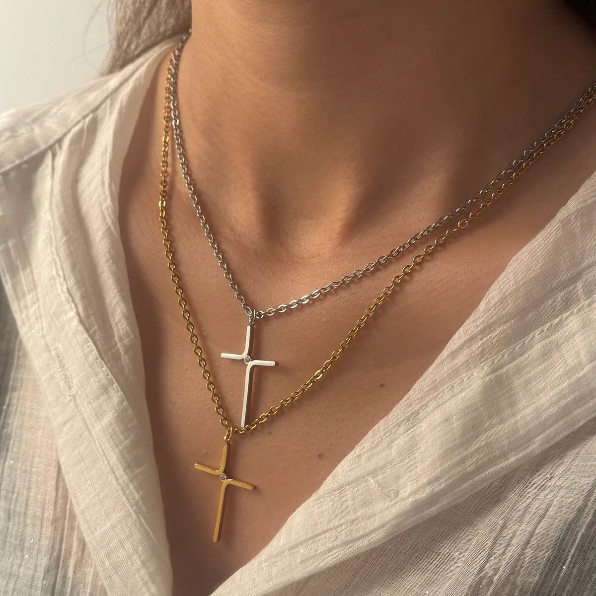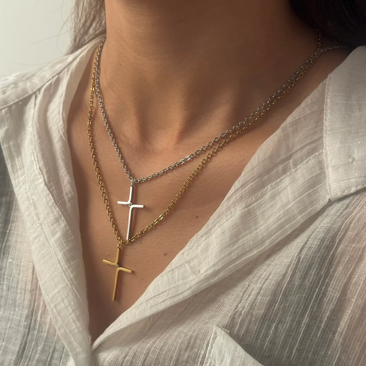 Cross 304 Stainless Steel 18K Gold Plated Plating O-shaped Chain Pendant Necklace