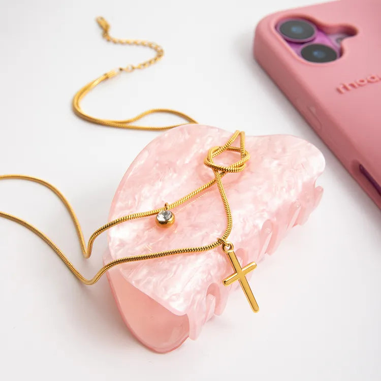 Cross Locked Zircon 304 Stainless Steel 18K Gold Plated Knotted Layered Necklace