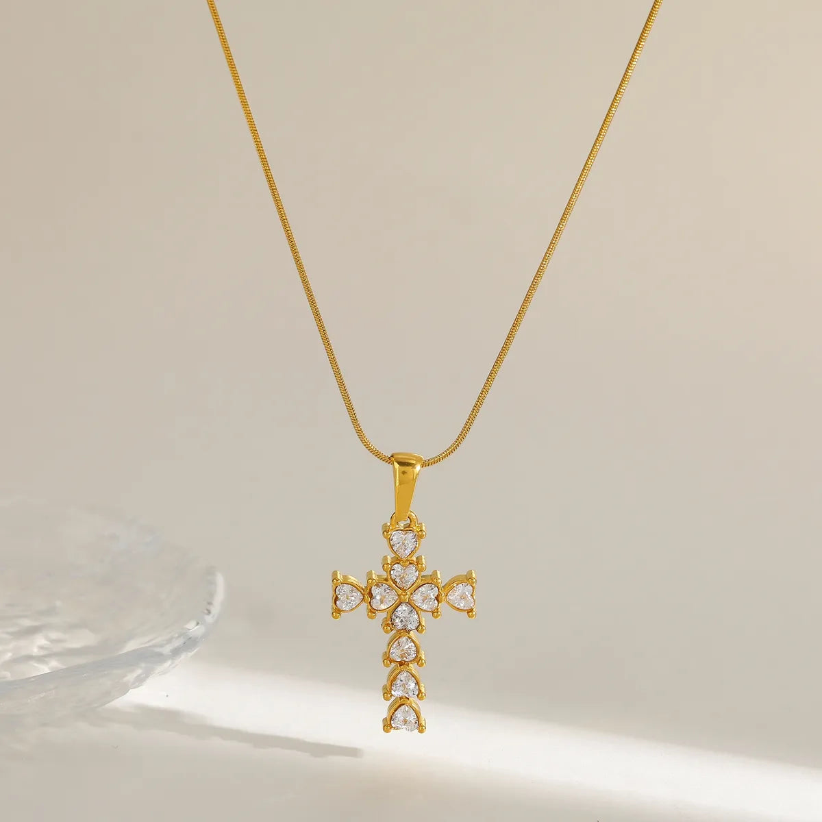 Crossed Heart 18K Gold Plated 304 Stainless Steel Necklace