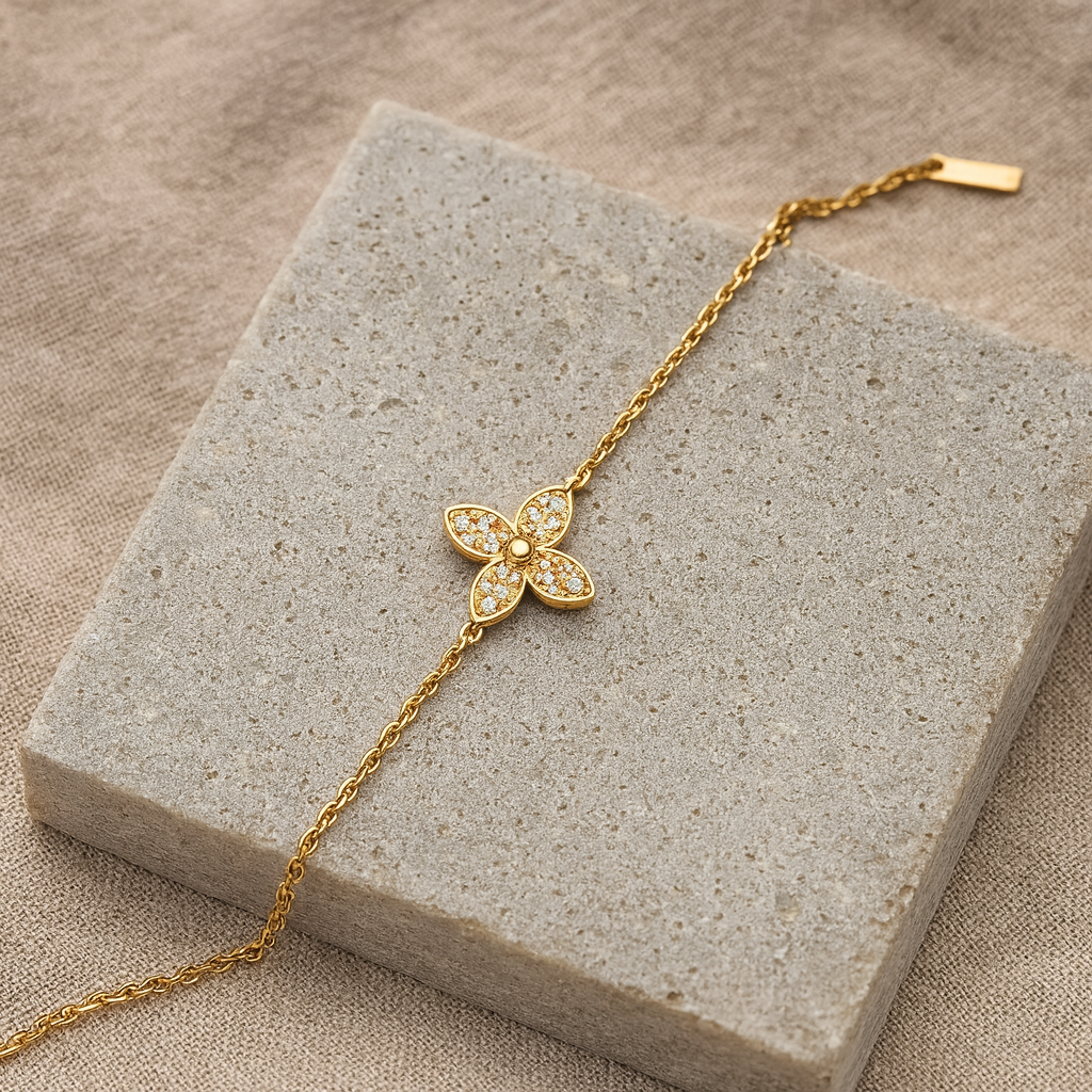 Dainty Four Leaf Clover 16K Gold Plated 304 Stainless Steel Bracelet
