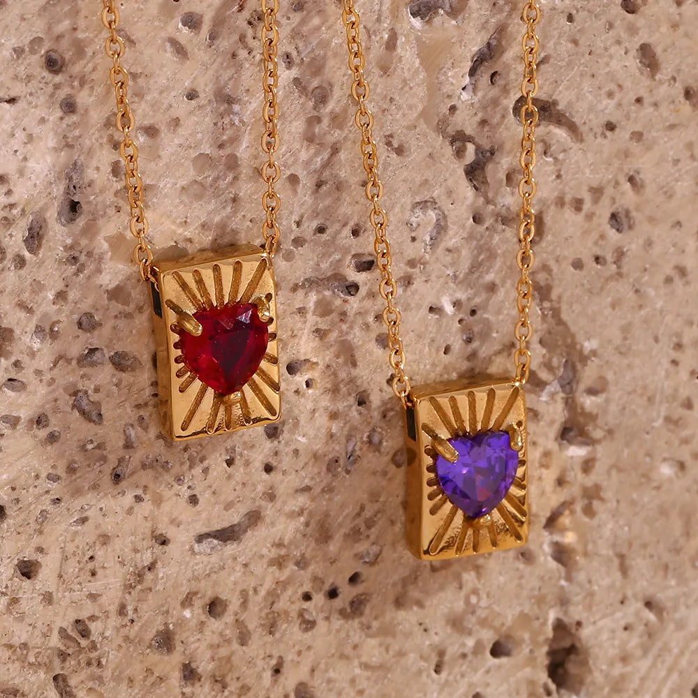 Diamond Heart Style Classic Style Heart Shape Stainless Steel Plating Zircon 18K Gold Plated Pendant Necklace