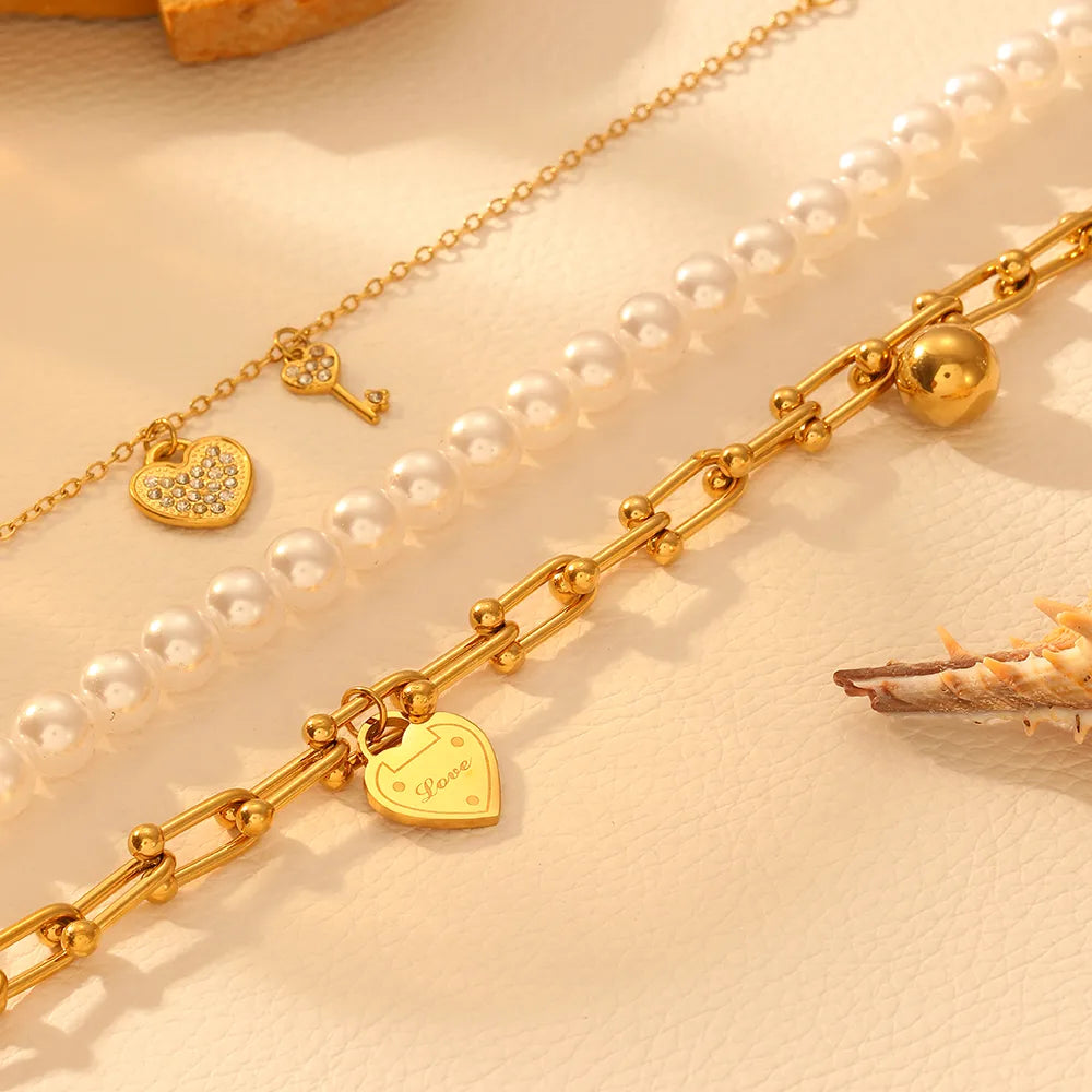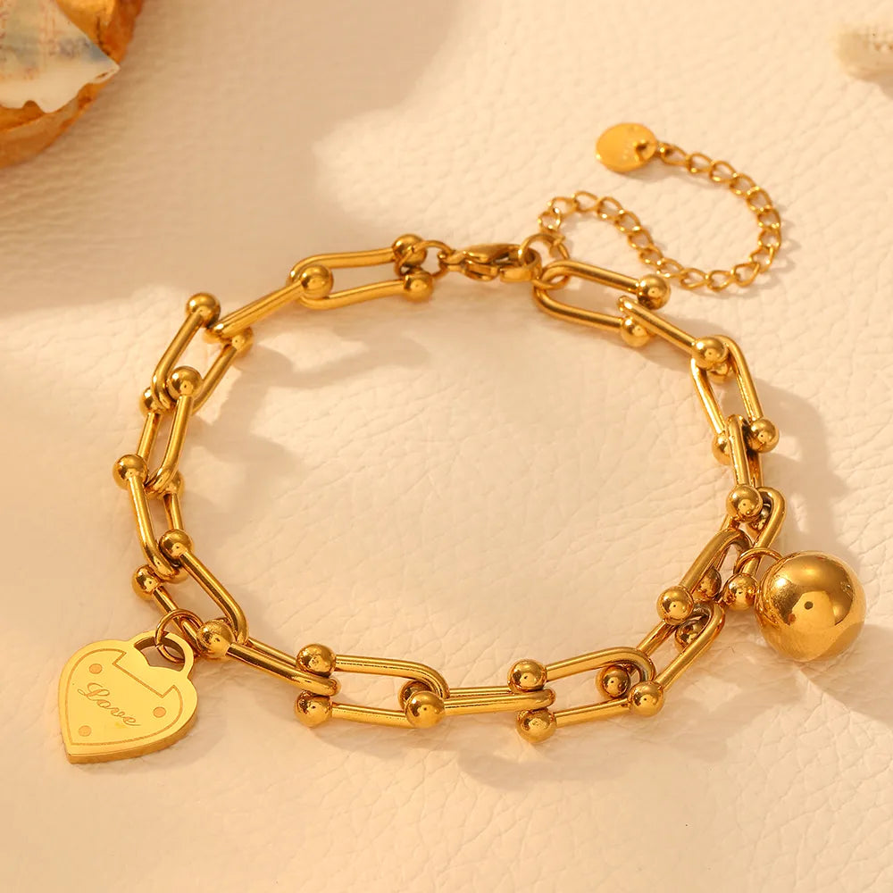 Elegant Heart Shape Titanium Steel 18K Gold Plated Paperclip Chain Cable Chain Bracelet