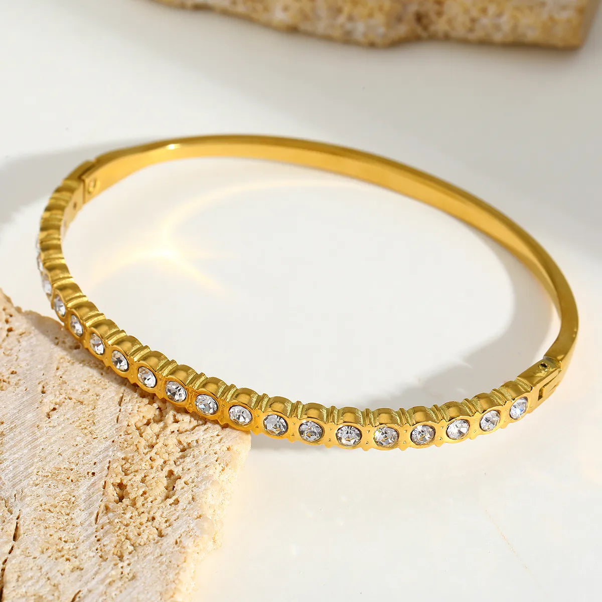 Elegant Simple Stainless Steel 18K Gold Embedded Zircon Bracelet