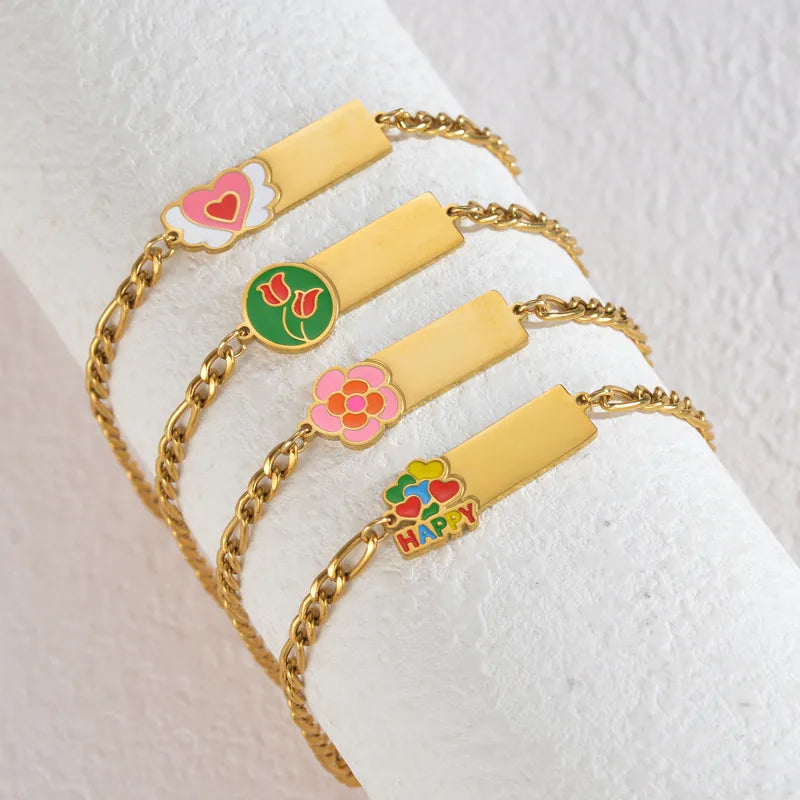 Flower 304 Stainless Steel 18K Gold Plated NK Chain Bracelet