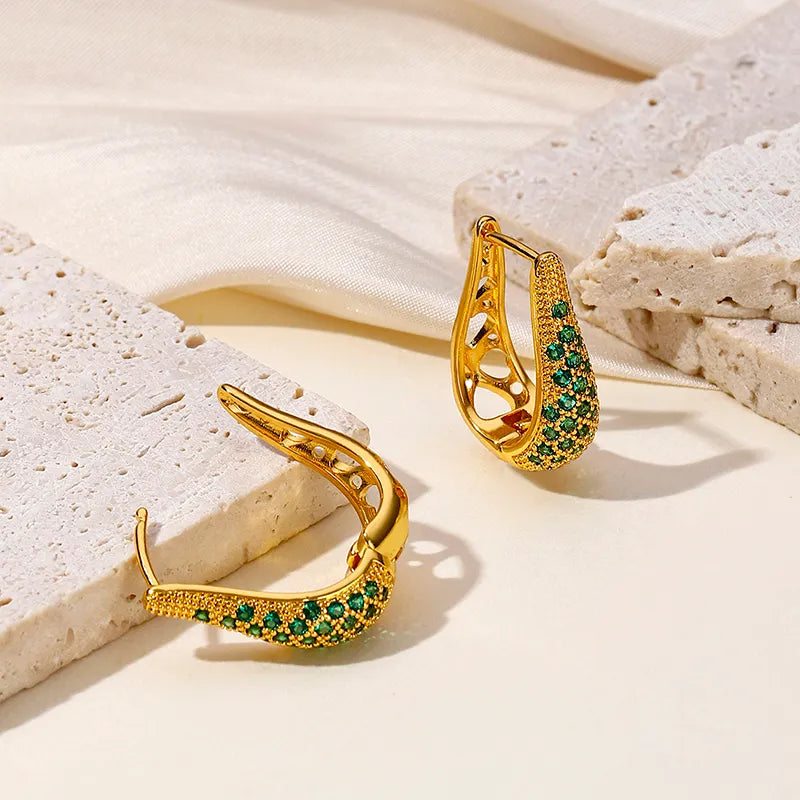 French Style Heart Shape Stainless Steel Plating Inlay Zircon Gold Plated Pendant Earring