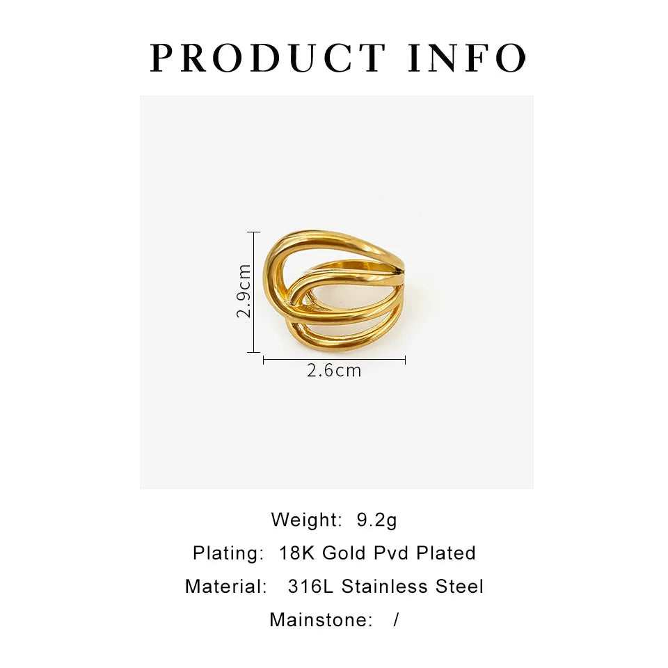 French Style IG Style Geometric 316L Stainless Steel 18K Gold Plated Irregular Open Ring