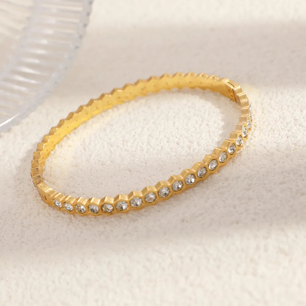 Full Diamond 18K Gold Plated Minimalist 304 Stainless Steel Round Bracelet