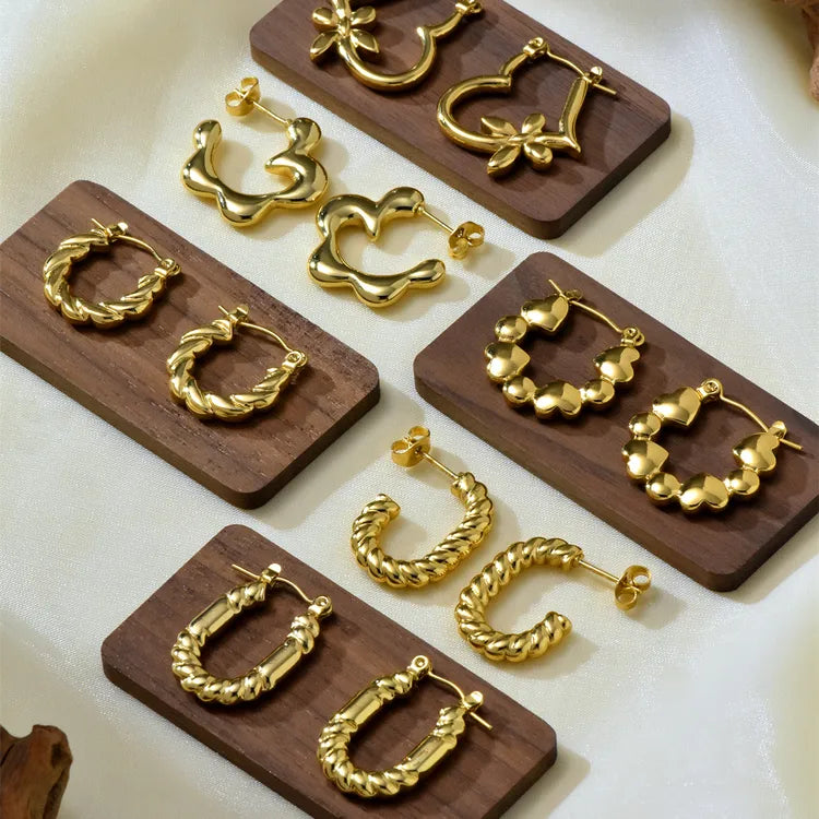 Golden Hoop 304 Stainless Steel Irregular 18K Gold Plated Earrings Set ( 6 pairs )
