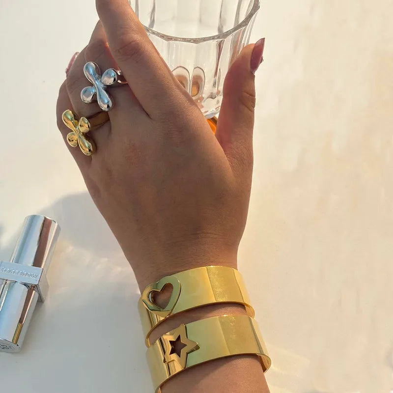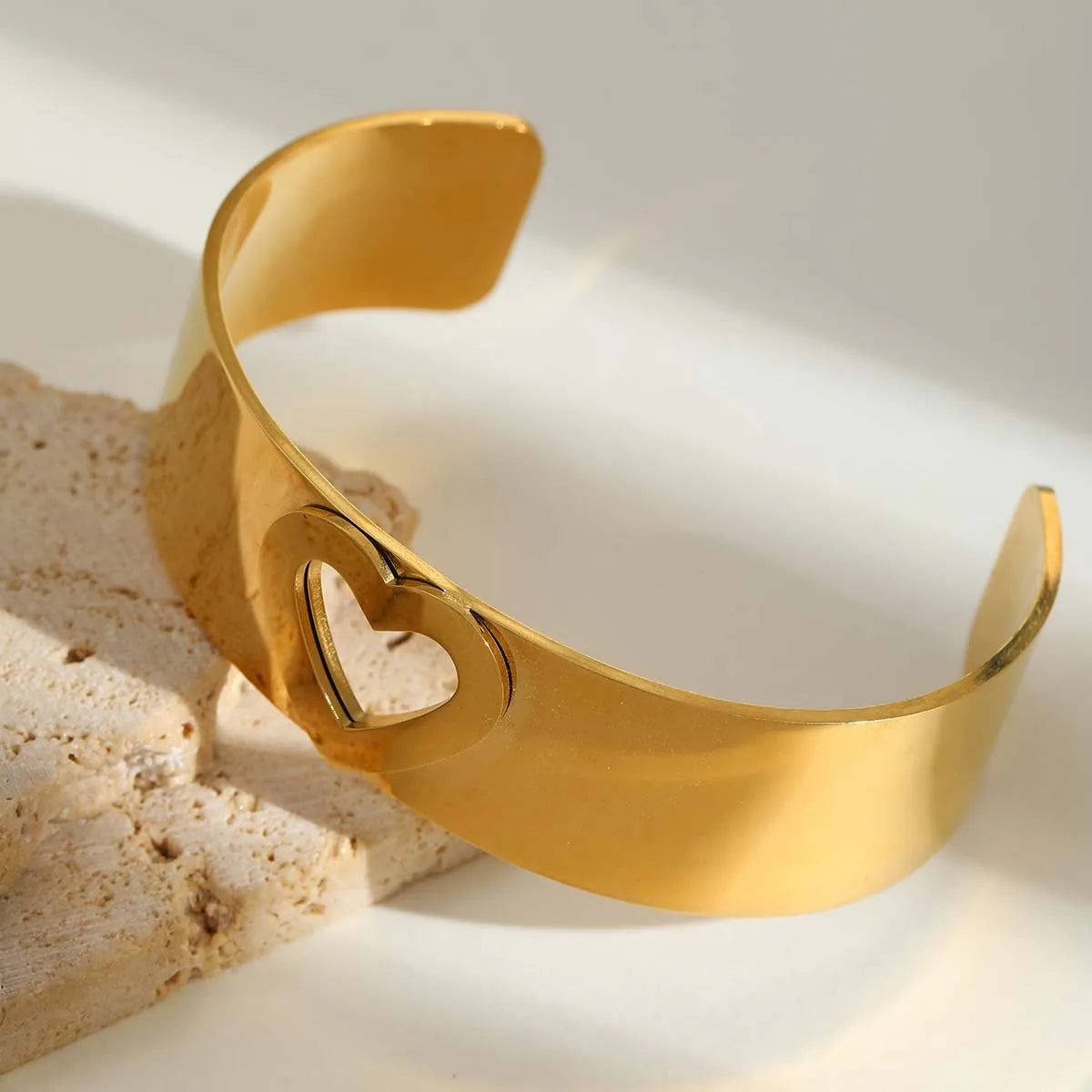Heart 304 Stainless Steel 18K Gold Plated Bangle