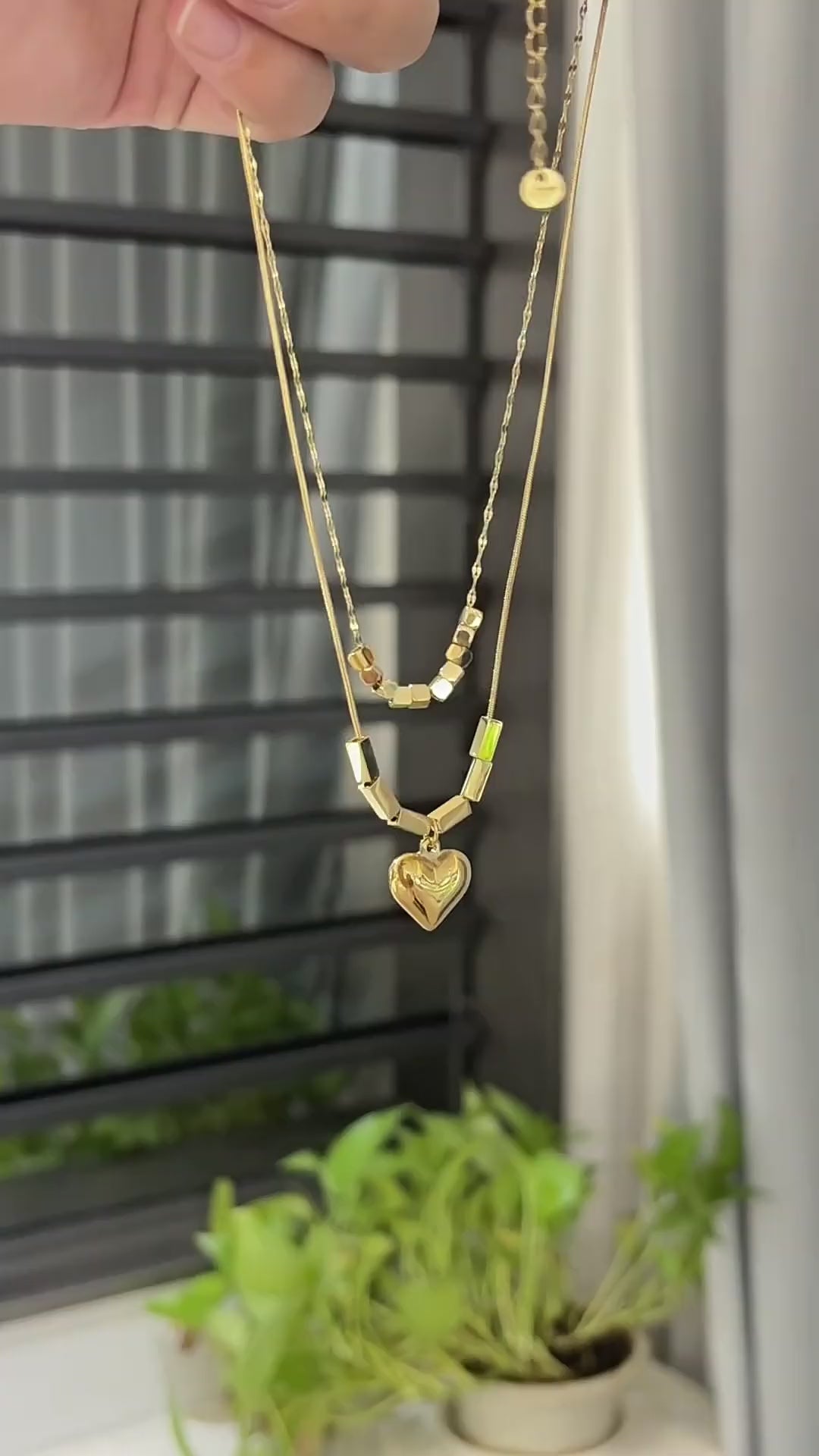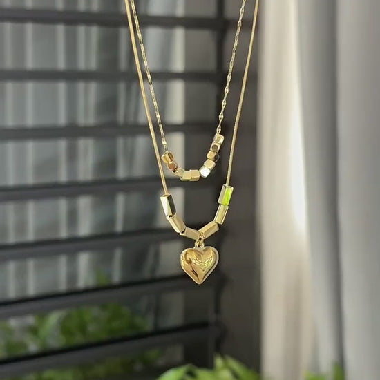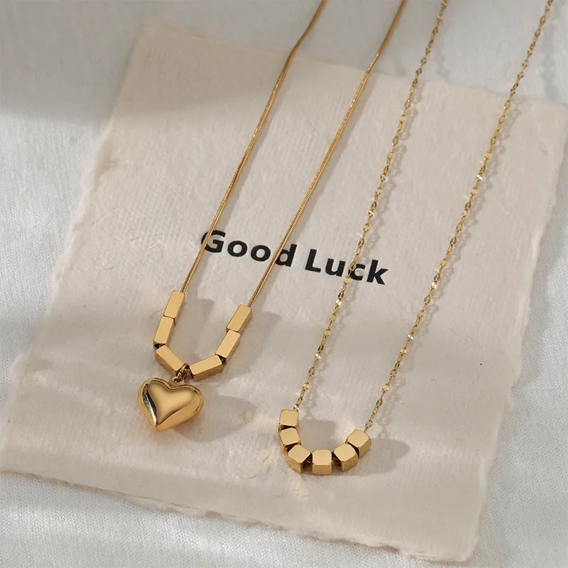 Heart Pendant and Square Charm 18K Gold Plated and 304 Stainless Steel Necklace