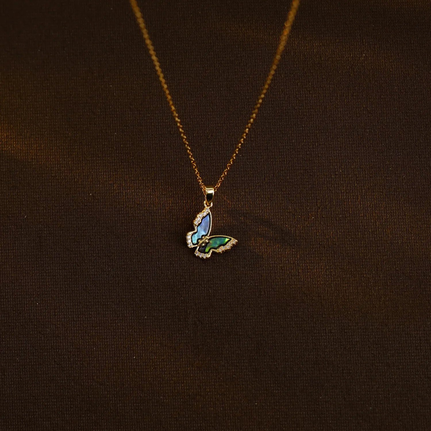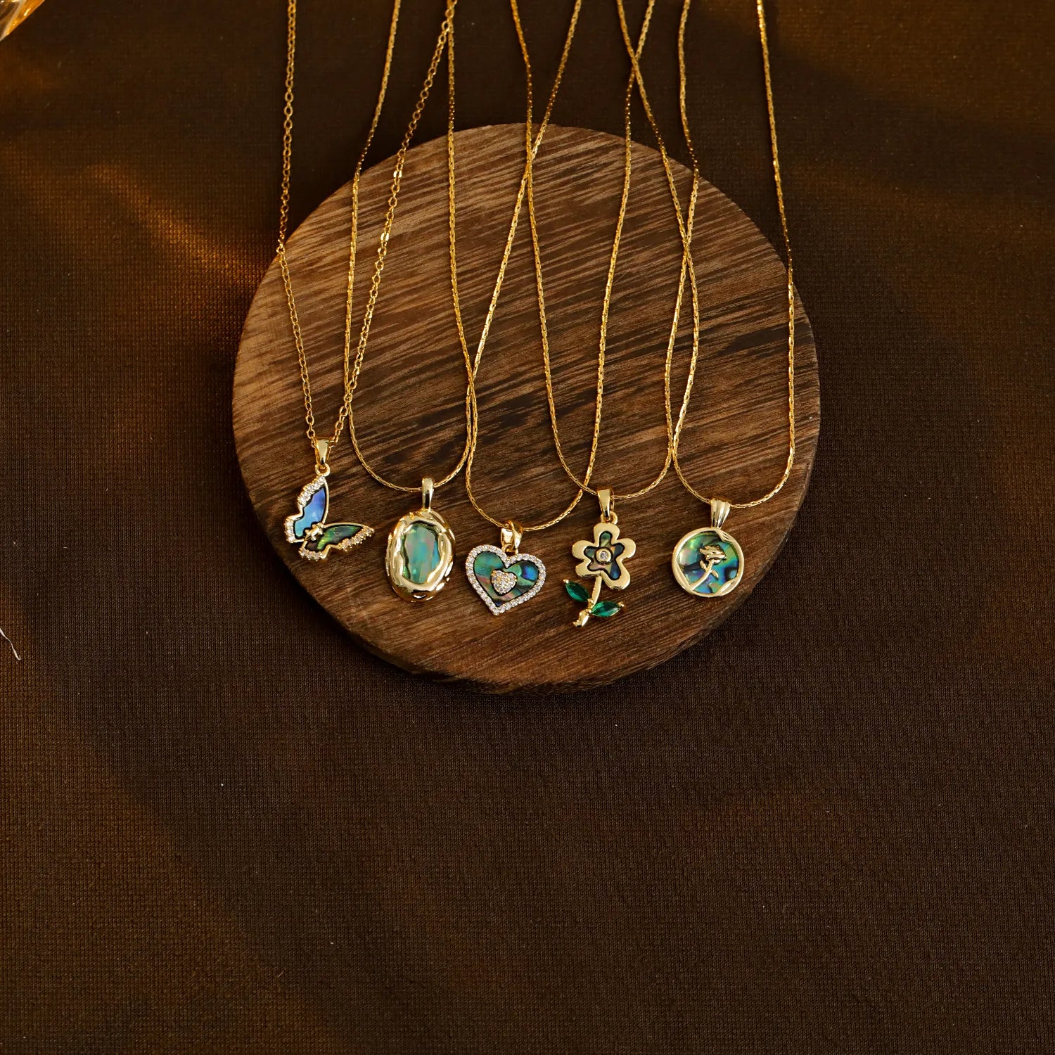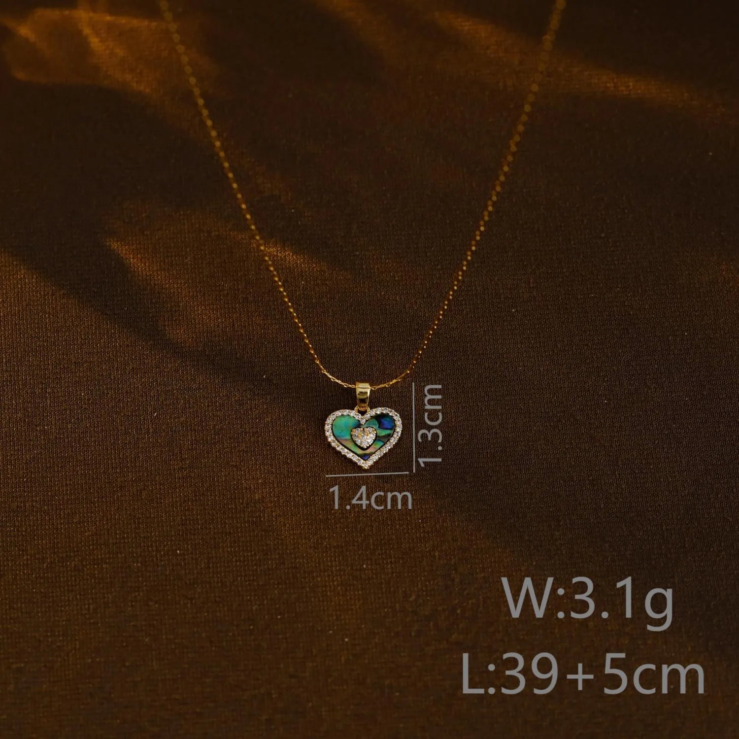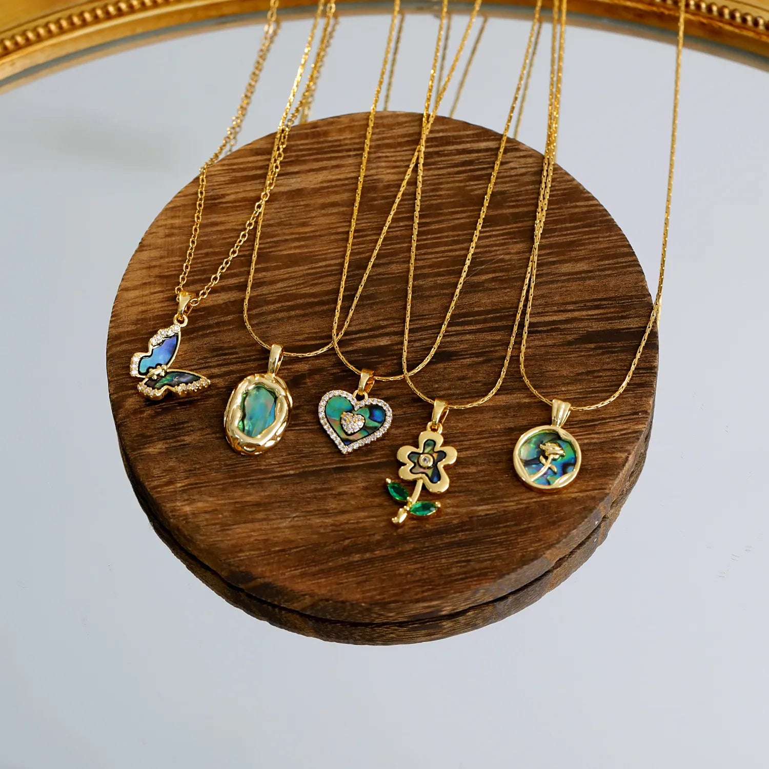 Heart Shape Flower Butterfly 304 Stainless Steel Zircon Abalone Shell 18K Gold Plated Necklace