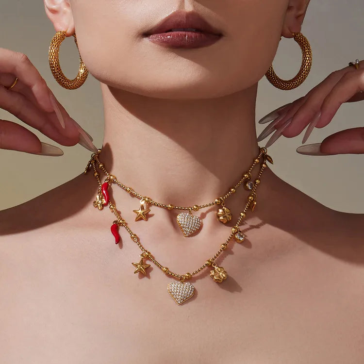 Heart Zircon Charms 304 Stainless Steel 18K Gold Plated Necklace