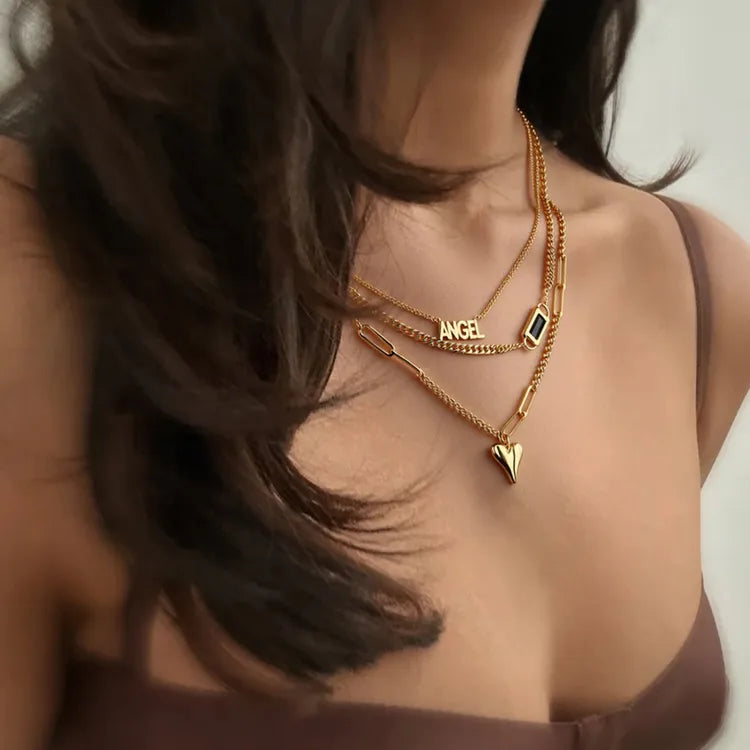 High-End Gift Multi-Layer Heart Pendant 304 Stainless Steel Necklace