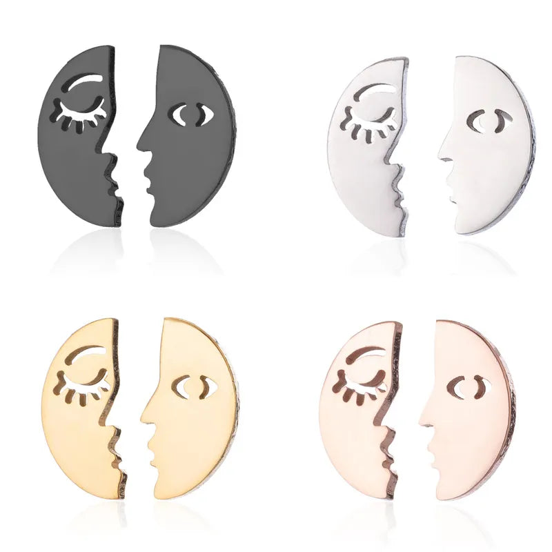 Human Face 304 Stainless Steel 18K Gold Plated Ear Studs