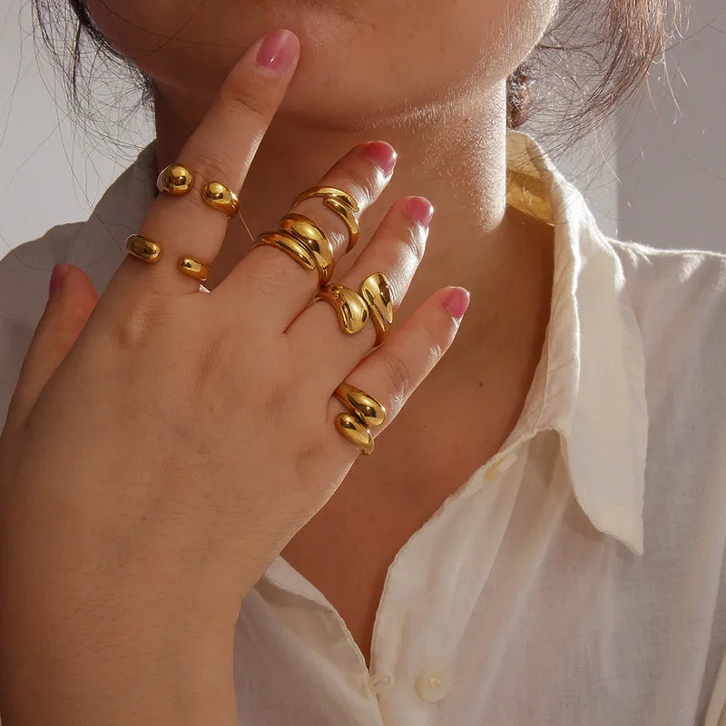 IG Style Basic Geometric 304 Stainless Steel 18K Gold Plated Plating Open Ring