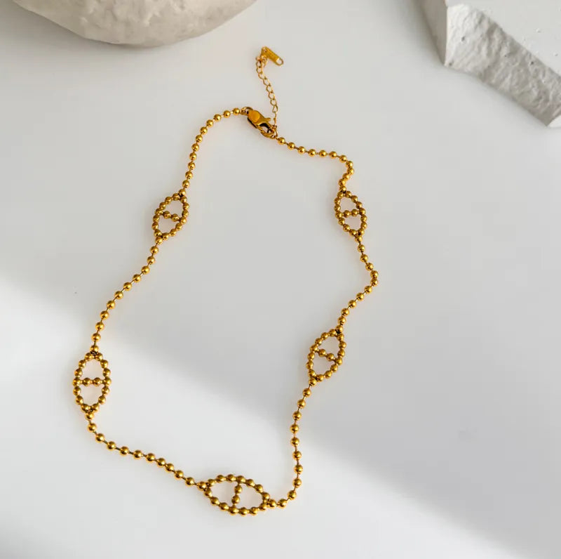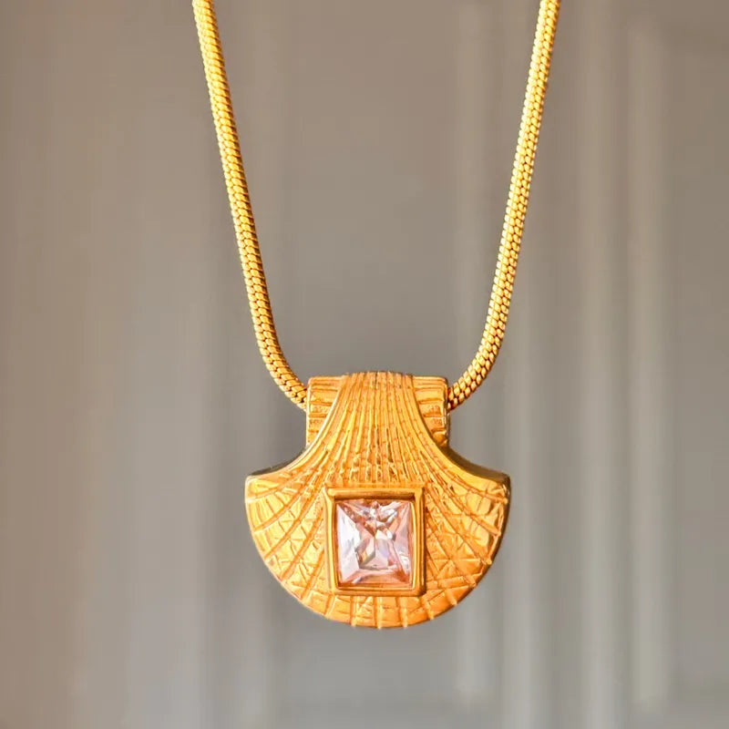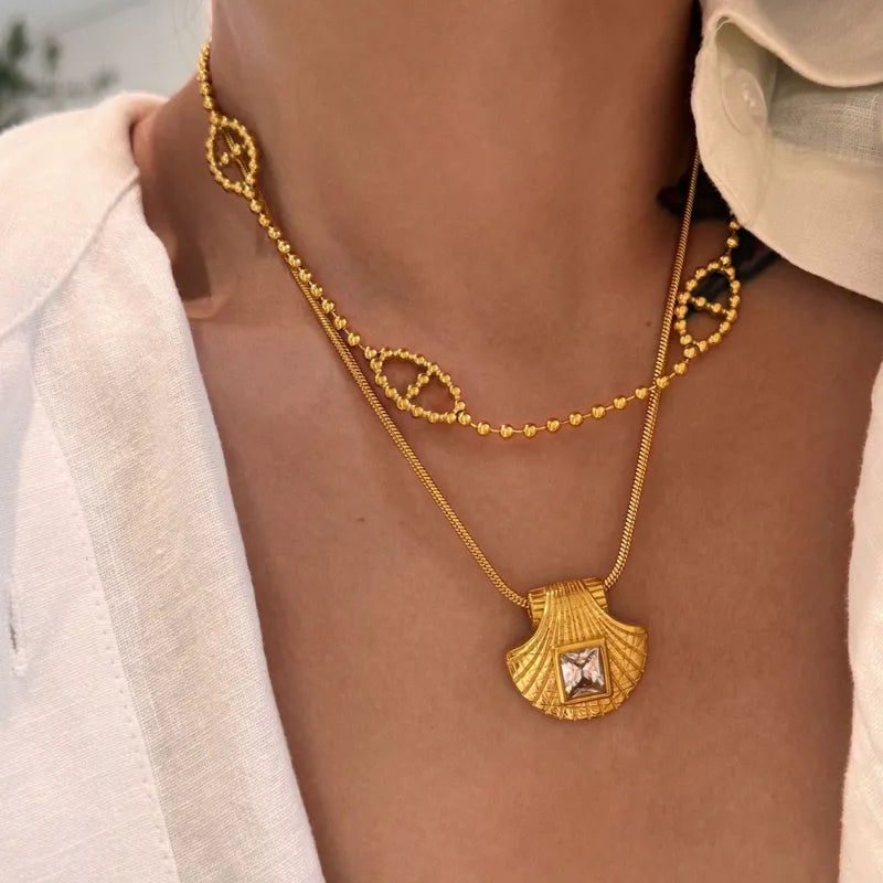 IG Style Retro Solid Color Shell Titanium Steel Zircon 18K Gold Plated Hollow Out Inlay Necklace
