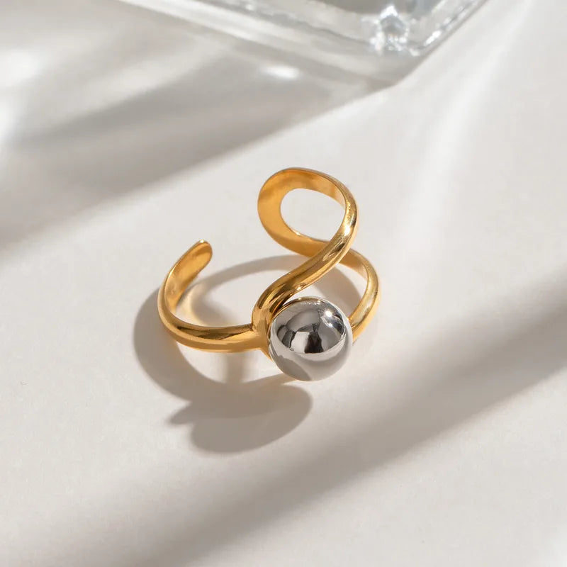 Juke Ball style Gold And Silver Steel Ball Adjustable Opening Ring Titanium Steel Ring