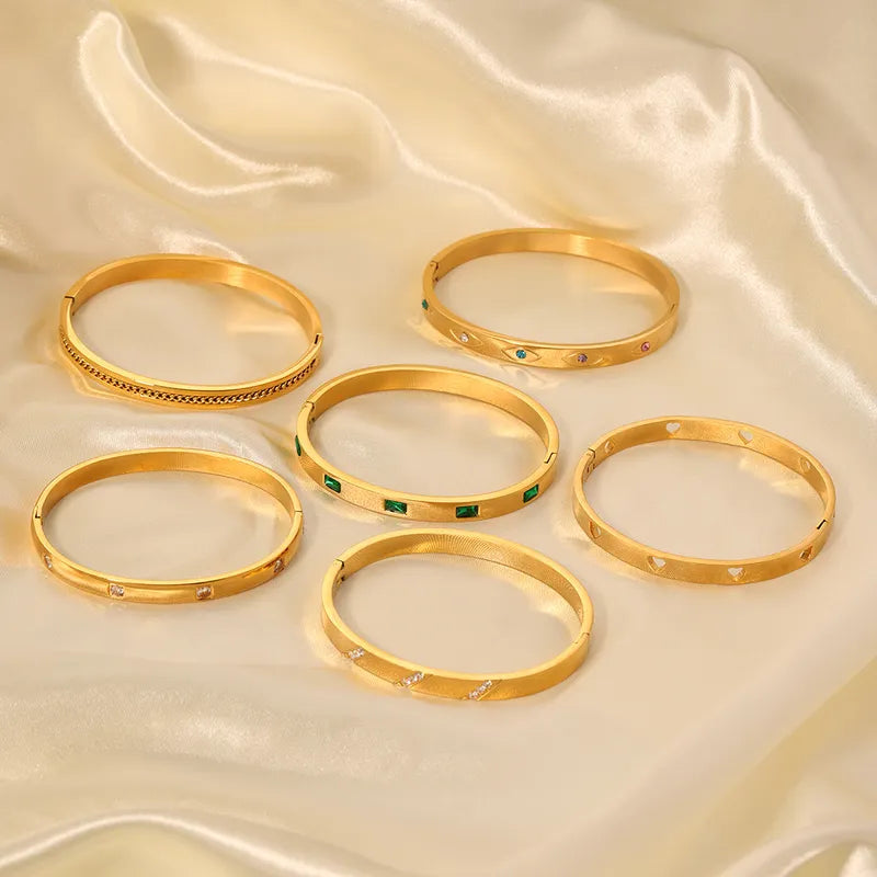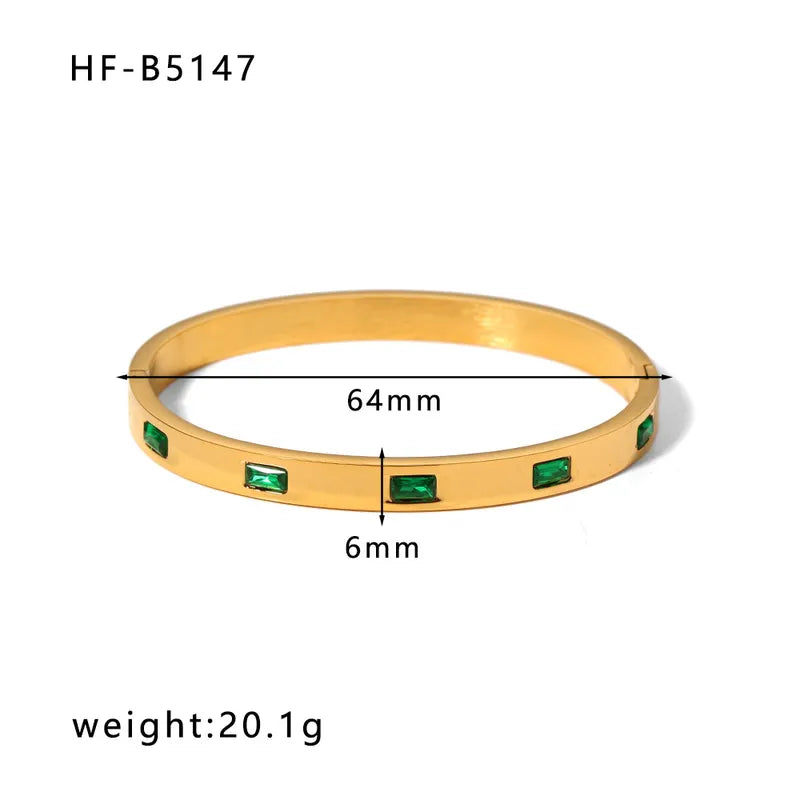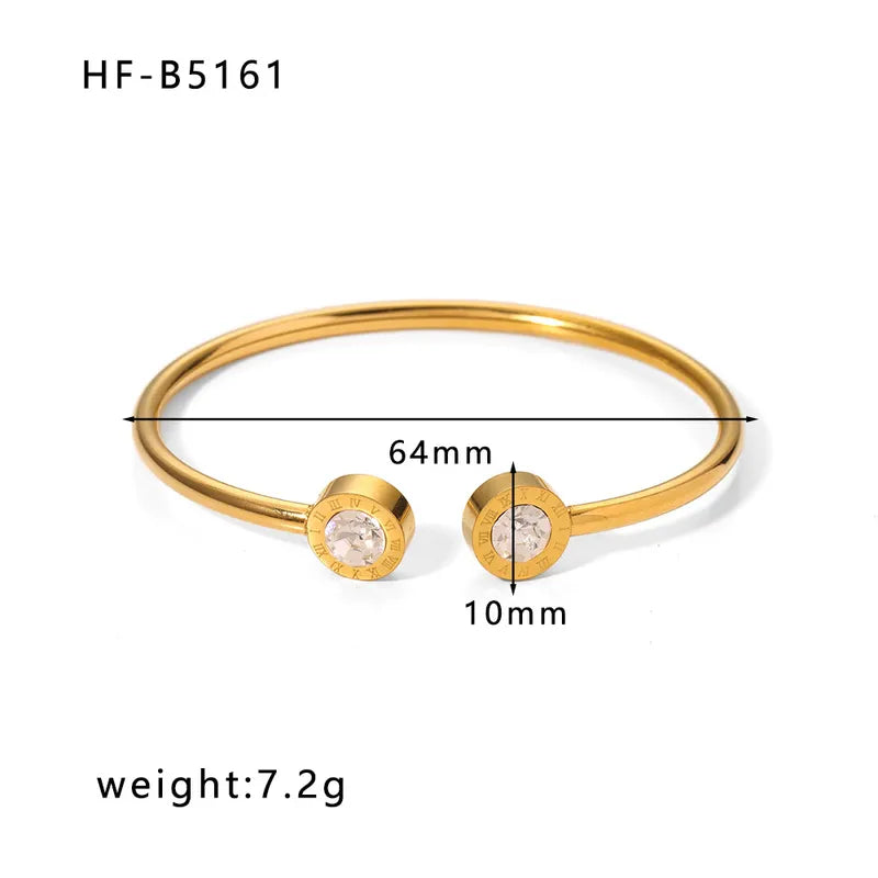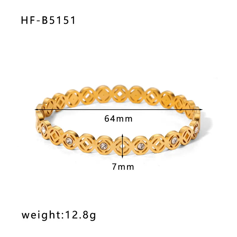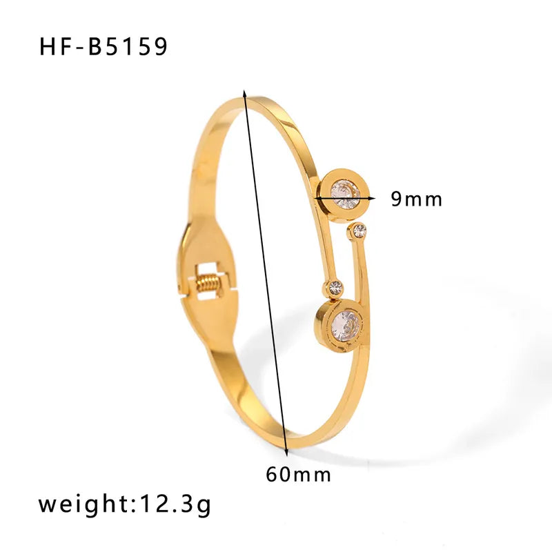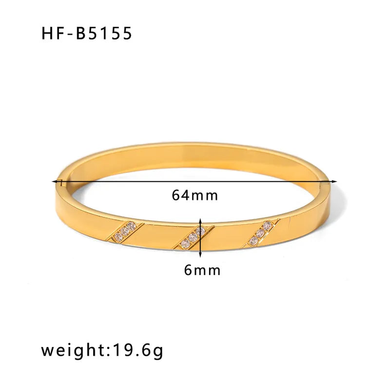 Korean style geometric stainless steel plating inlay zircon 18k gold plated bangle