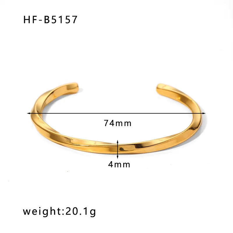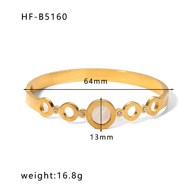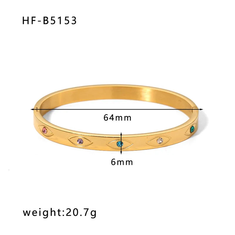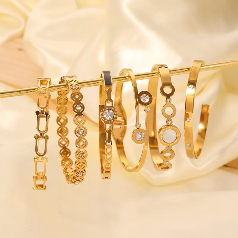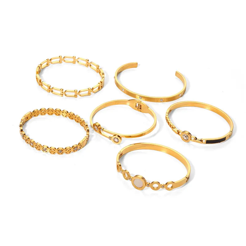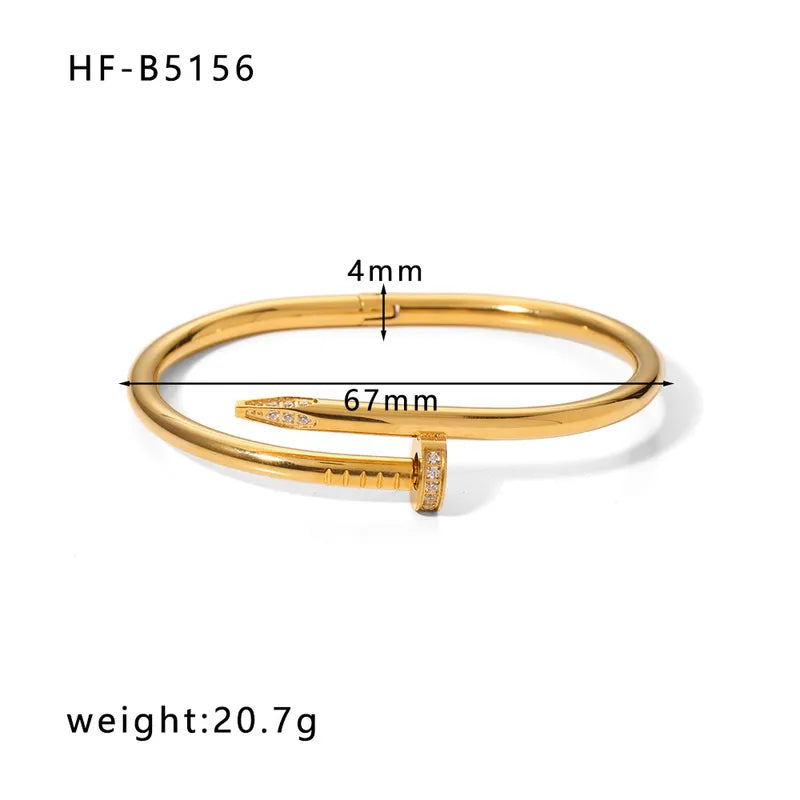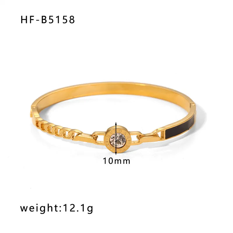 Korean style geometric stainless steel plating inlay zircon 18k gold plated bangle