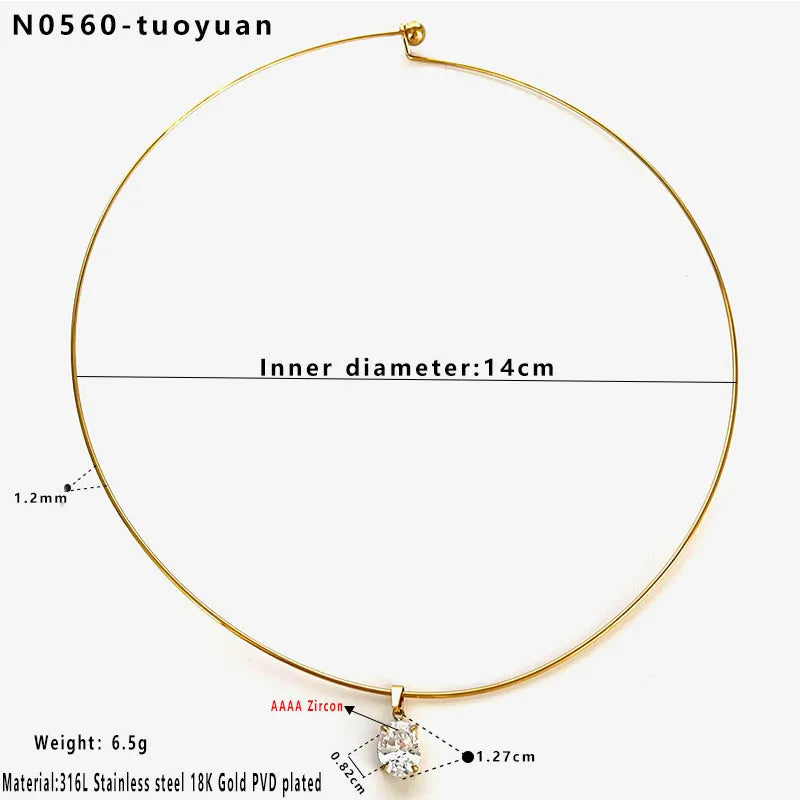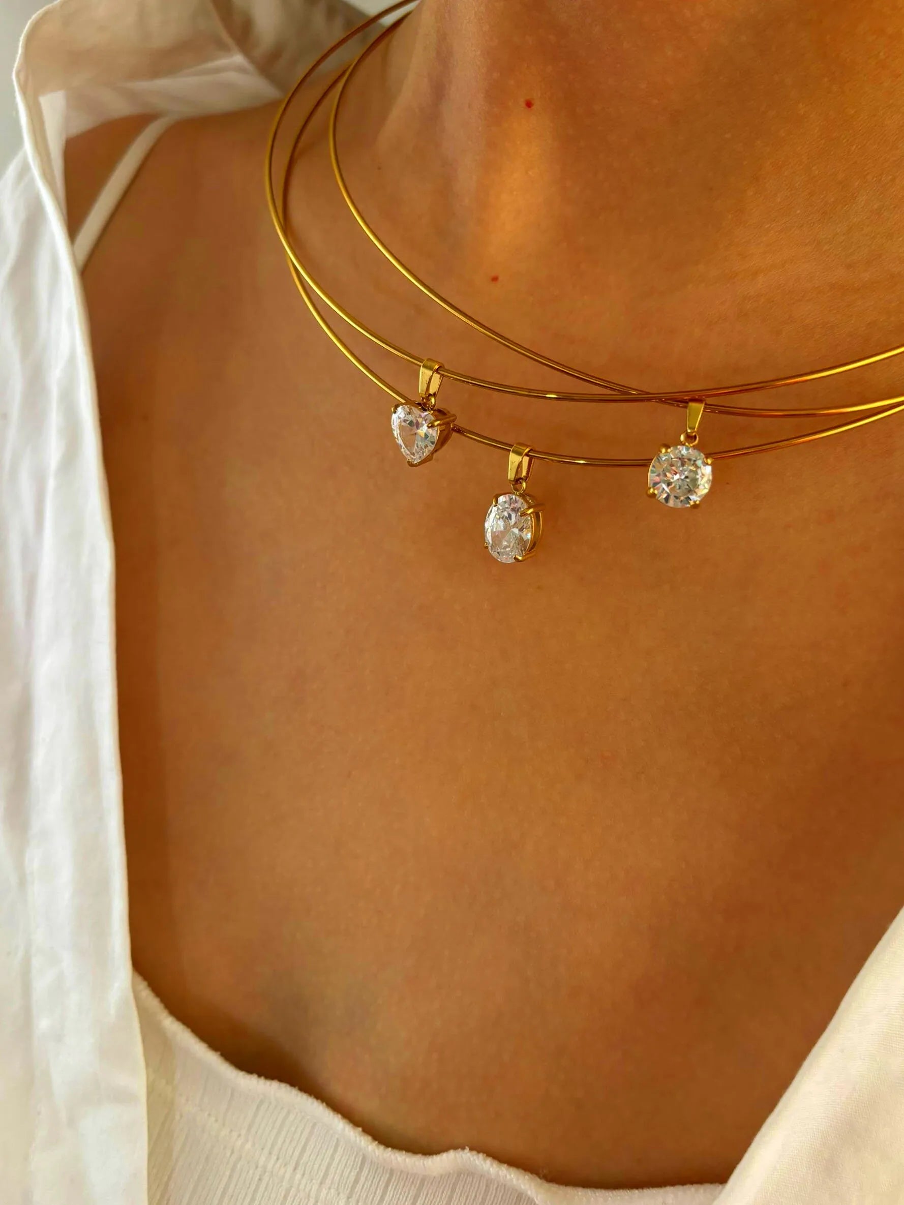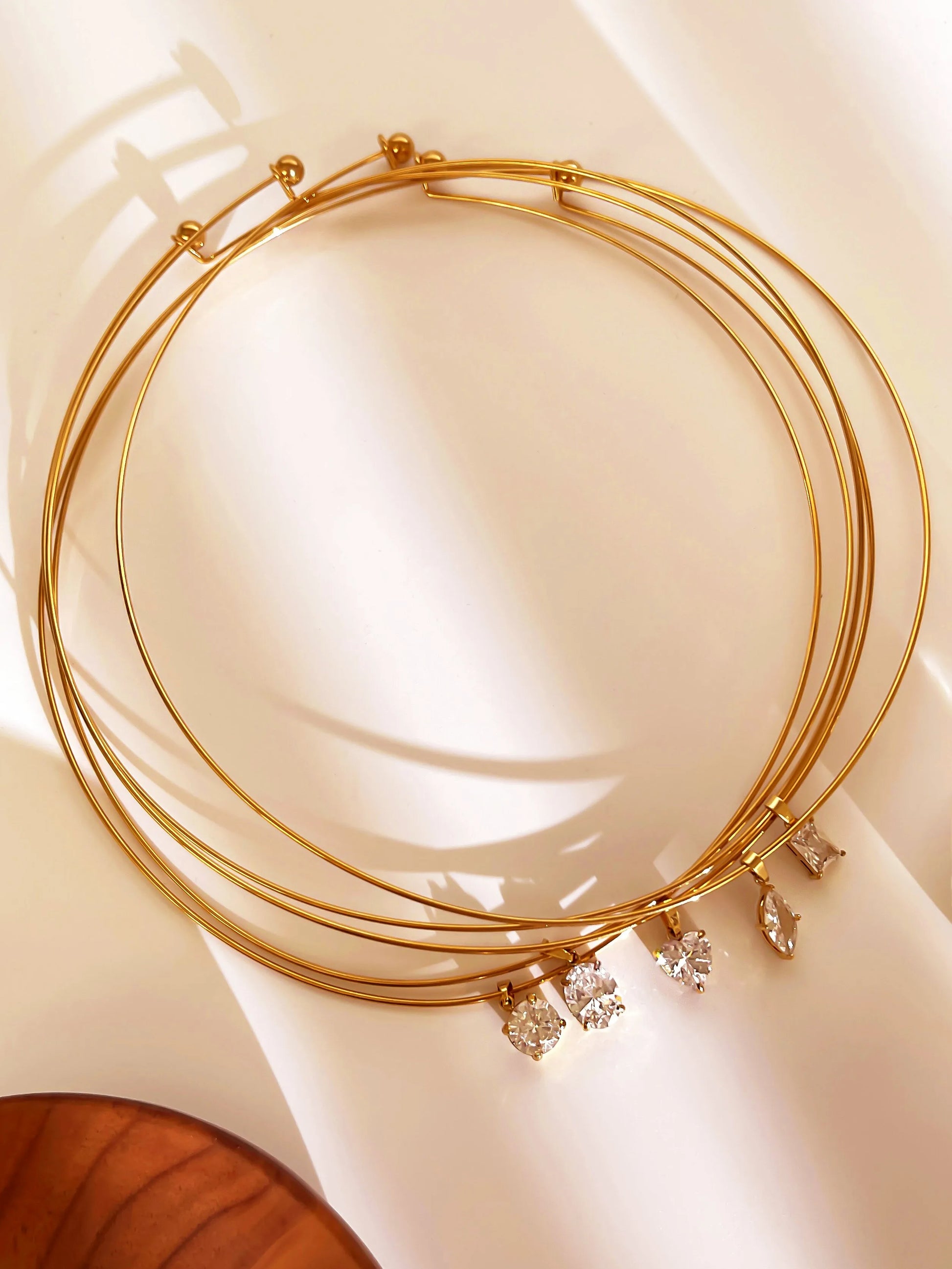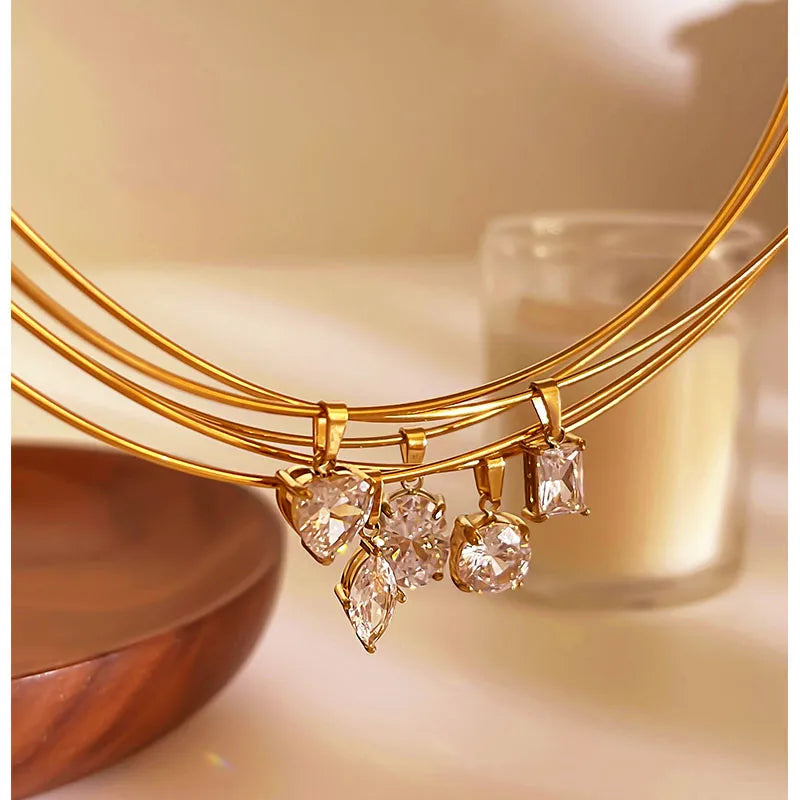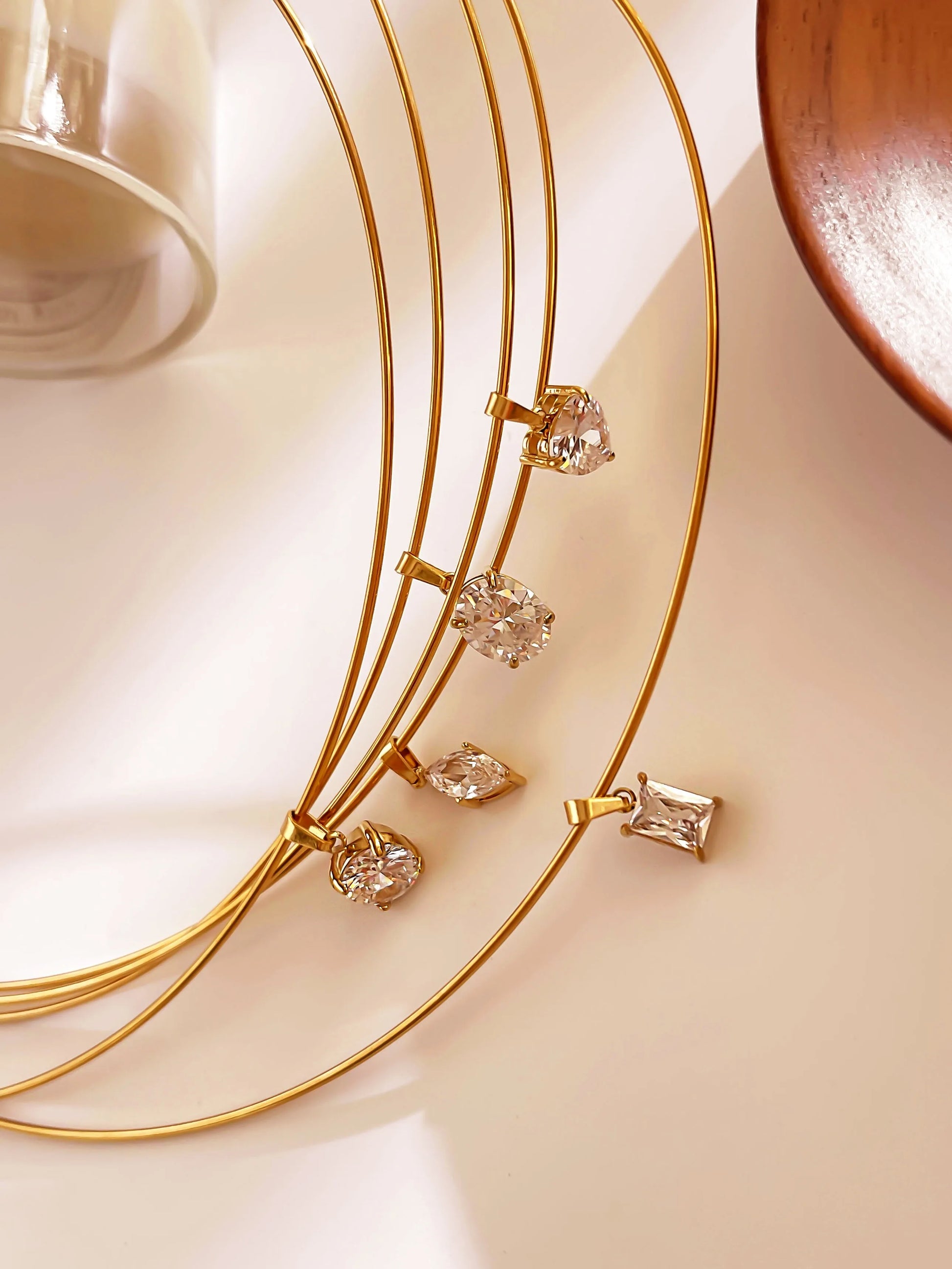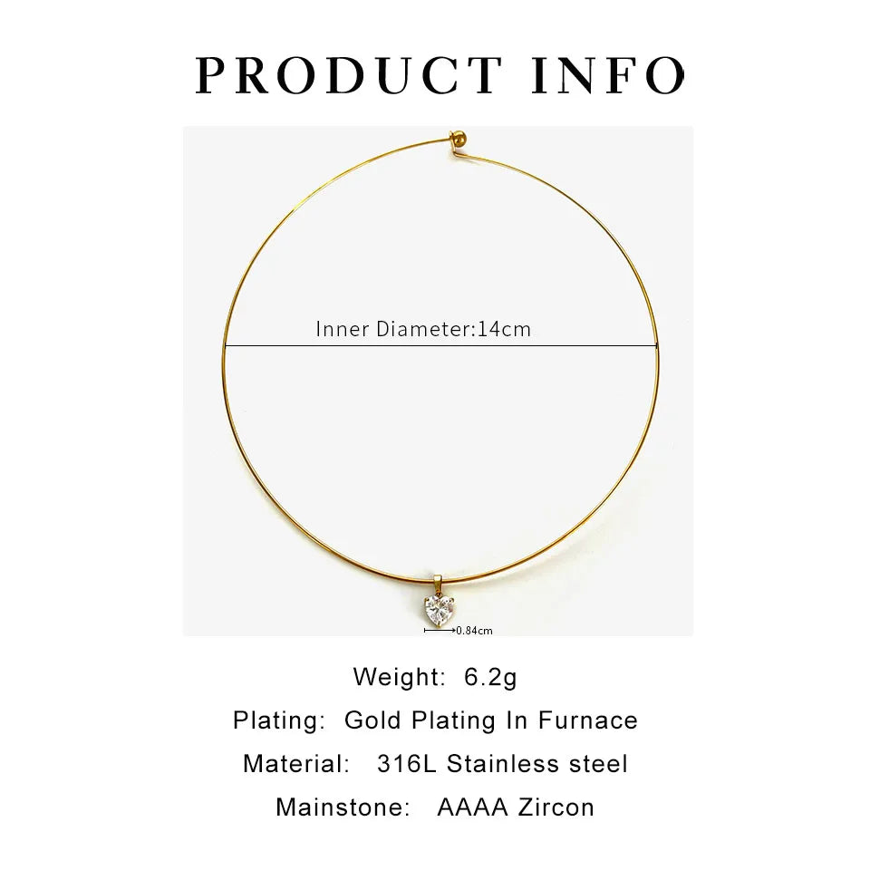 Lady Shiny Heart Shape 316L Stainless Steel Zircon 18K Gold Plated Irregular Choker