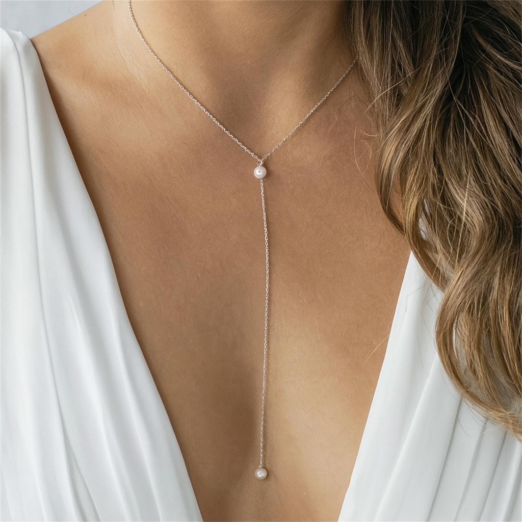 Lengthy Pearl Stainless Steel 14K Silver Plated Pearl Necklacee