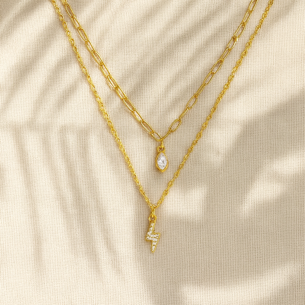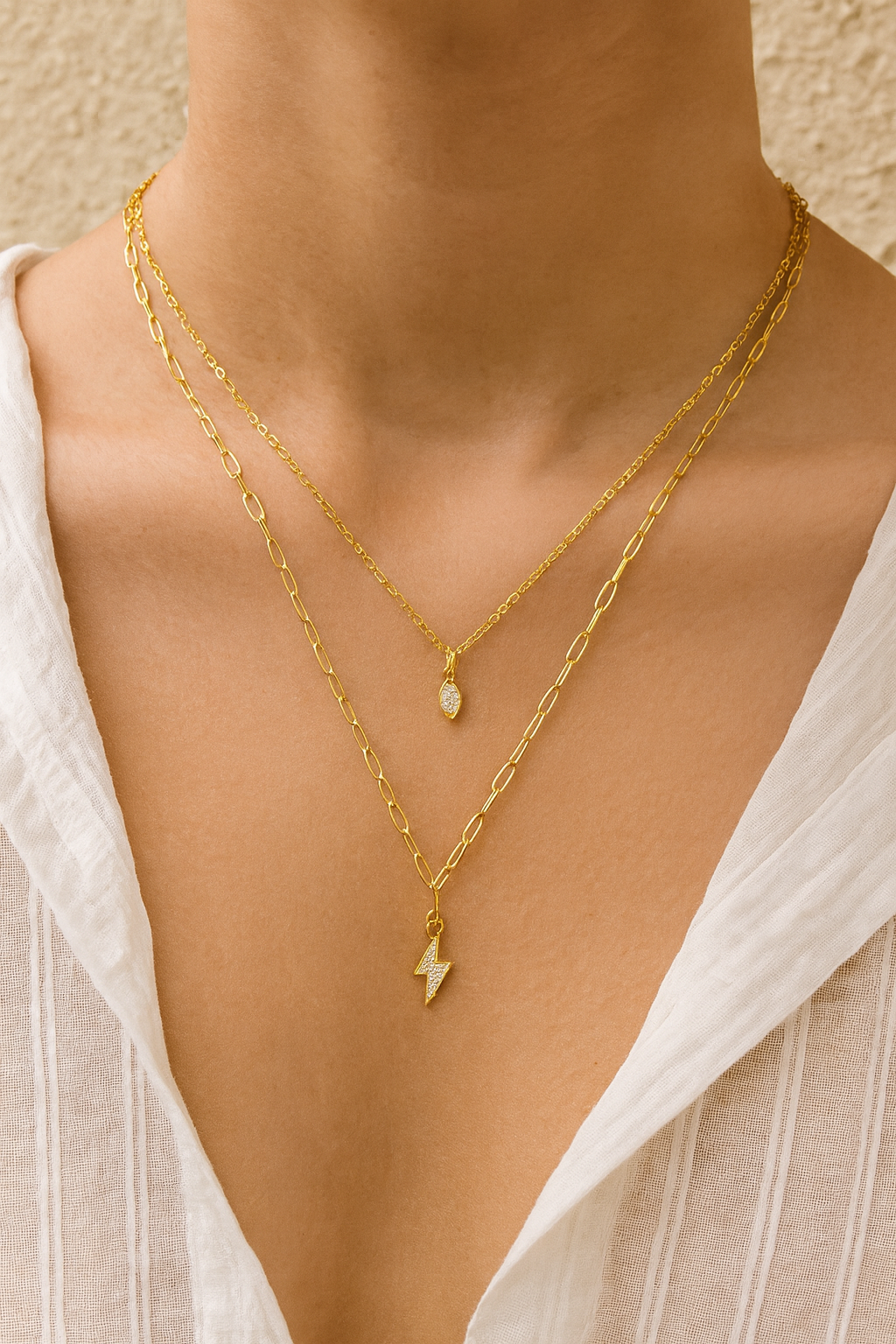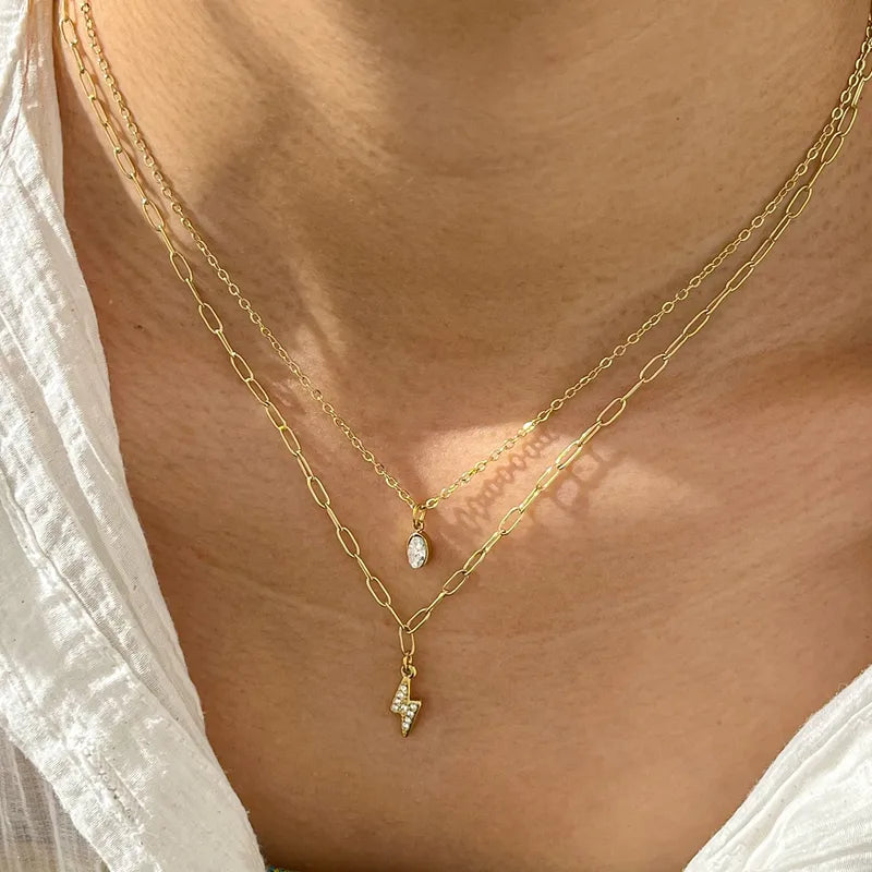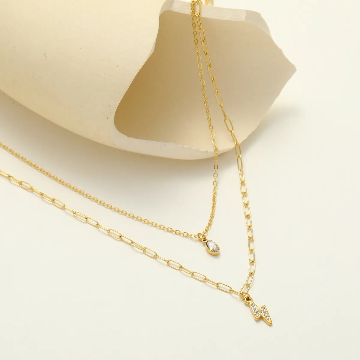 Luxurious 16K Gold Plated Stainless Steel Zirconia Lightning Pendant Necklace