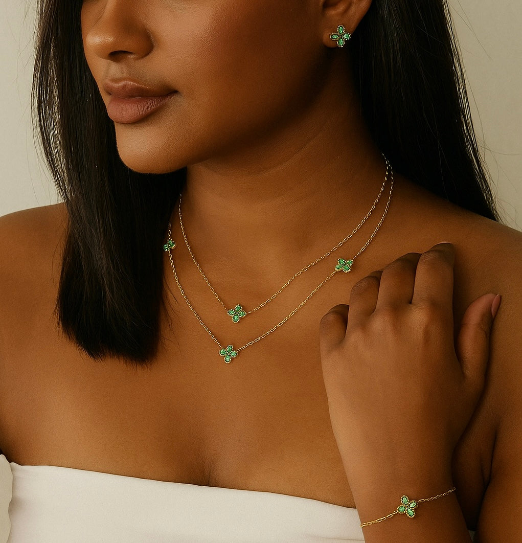 Luxury Flower 304 Stainless Steel 18K Gold Plated Zircon Necklace Bracelet Set
