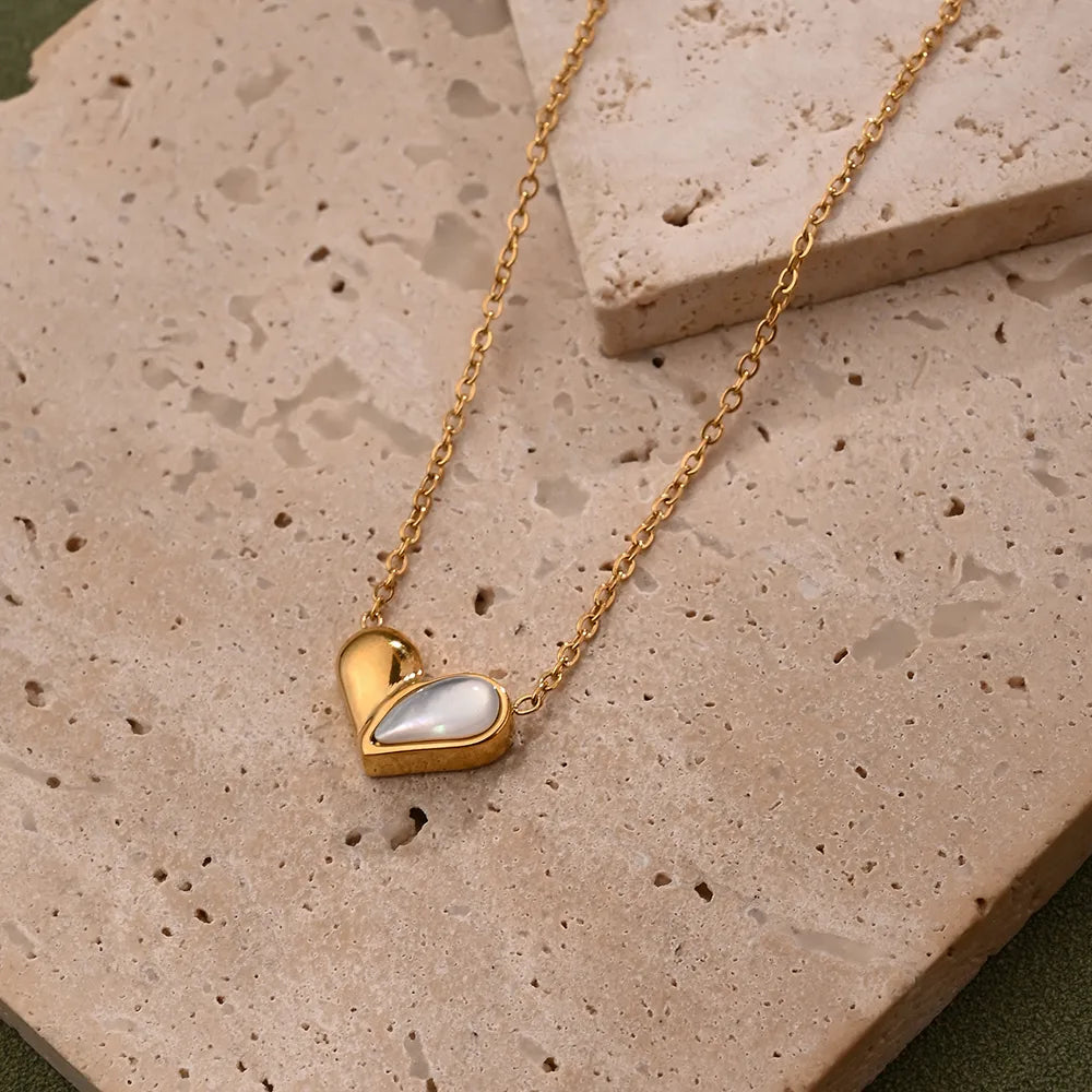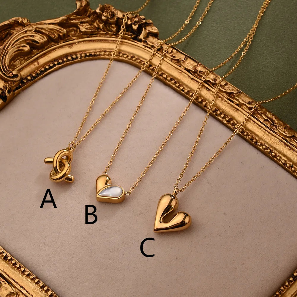 M Heart Shape Knot 304 Stainless Steel Resin 18K Gold Plated Necklace