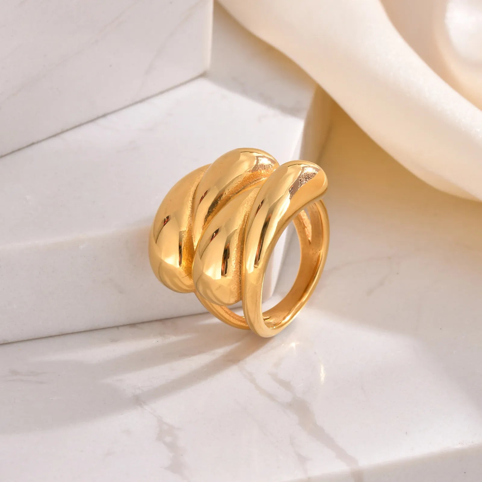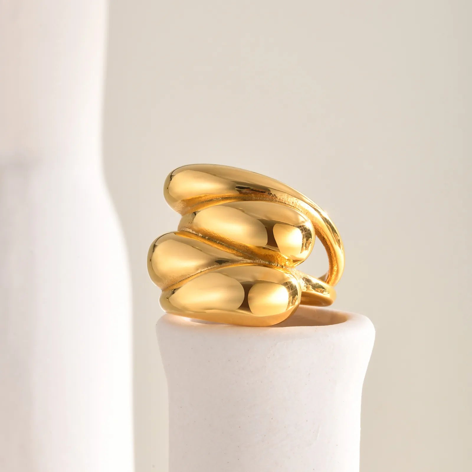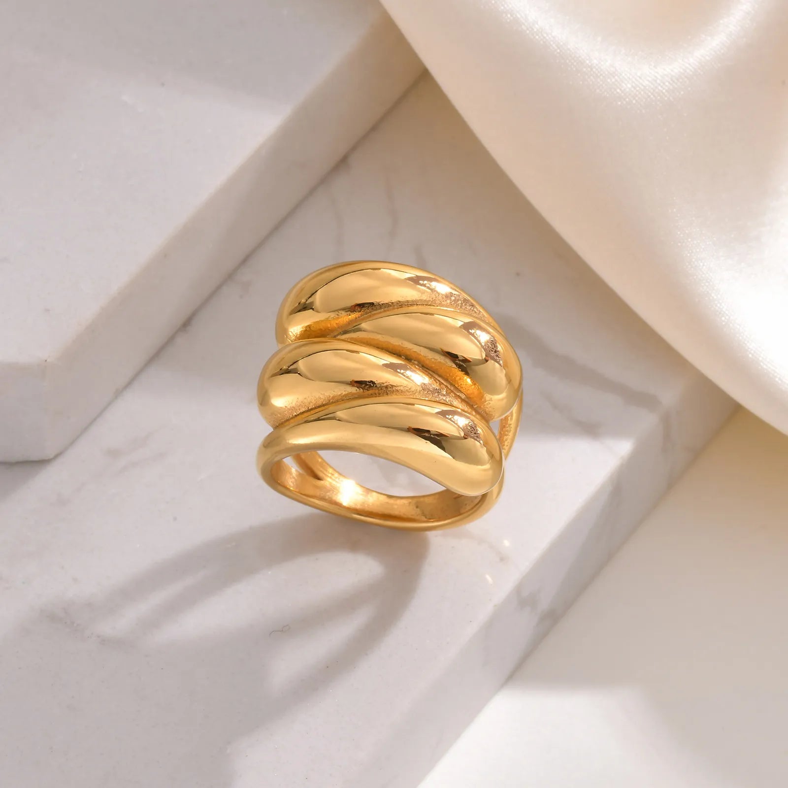 Maximalism Solid Color 304 Stainless Steel 18K Gold Plated Criss Cross Layered Rings