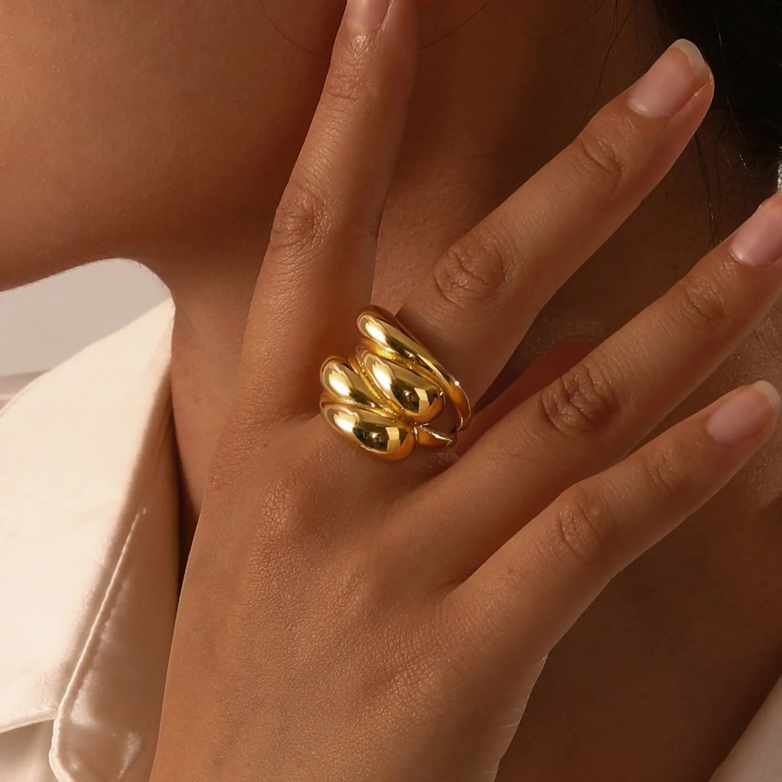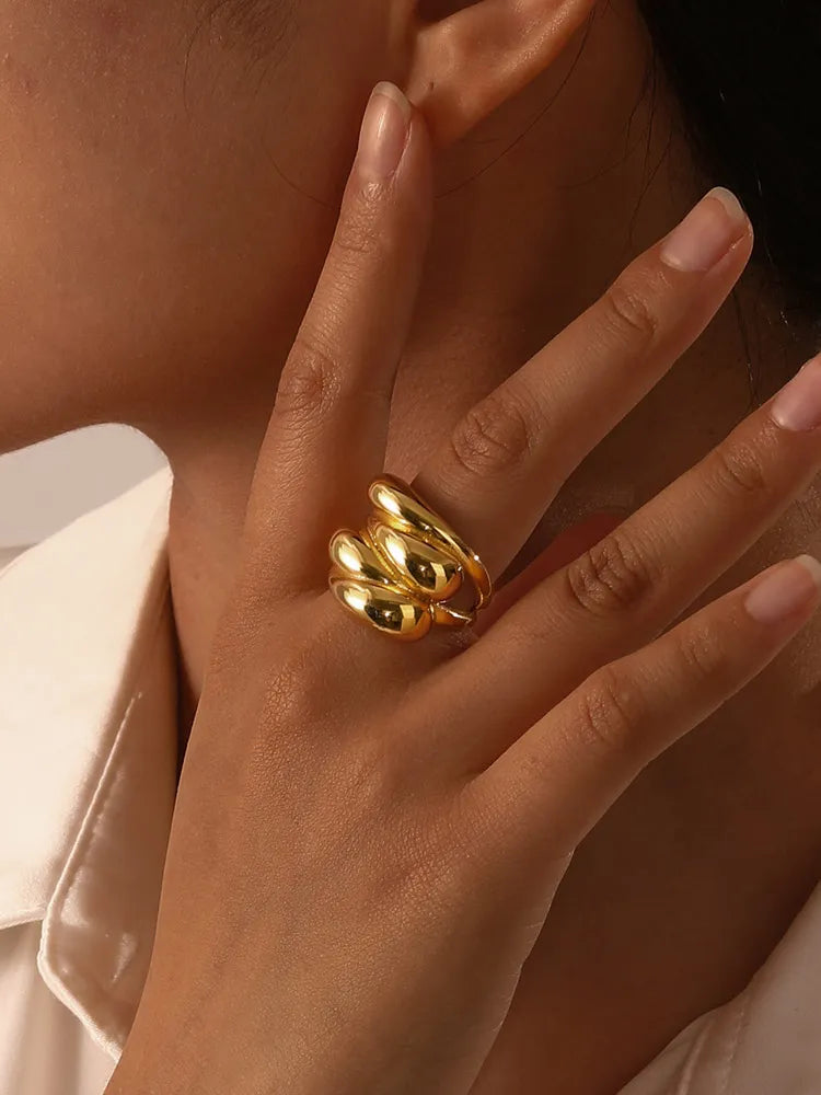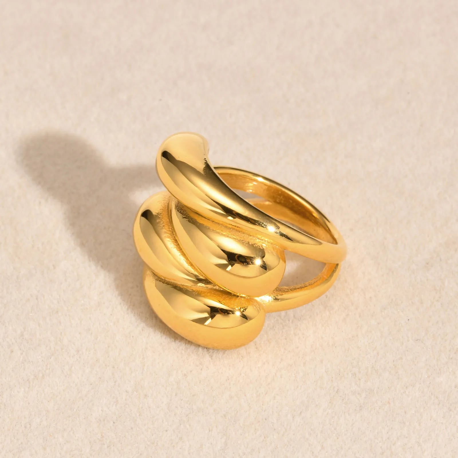 Maximalism Solid Color 304 Stainless Steel 18K Gold Plated Criss Cross Layered Rings