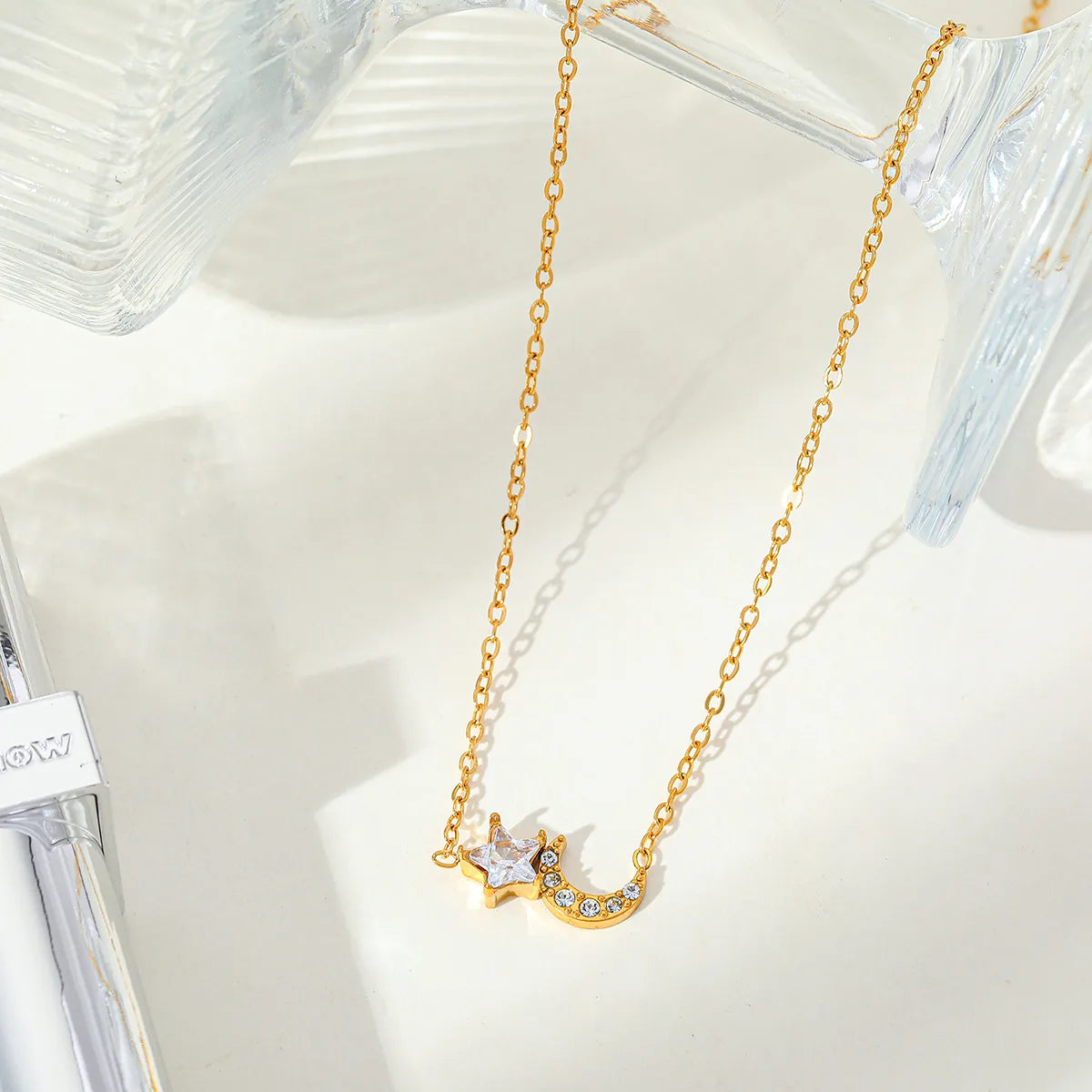 Star Moon Heart Shape 304 Stainless Steel Zircon 18K Gold Plated Multi Charms Necklace