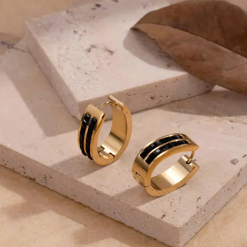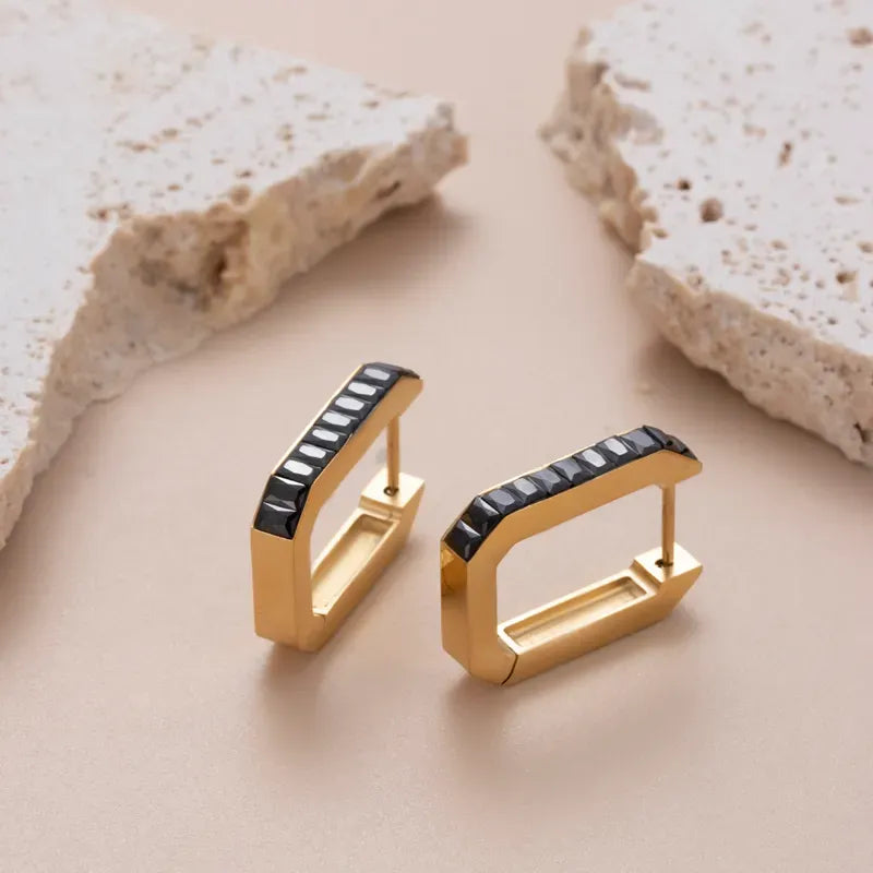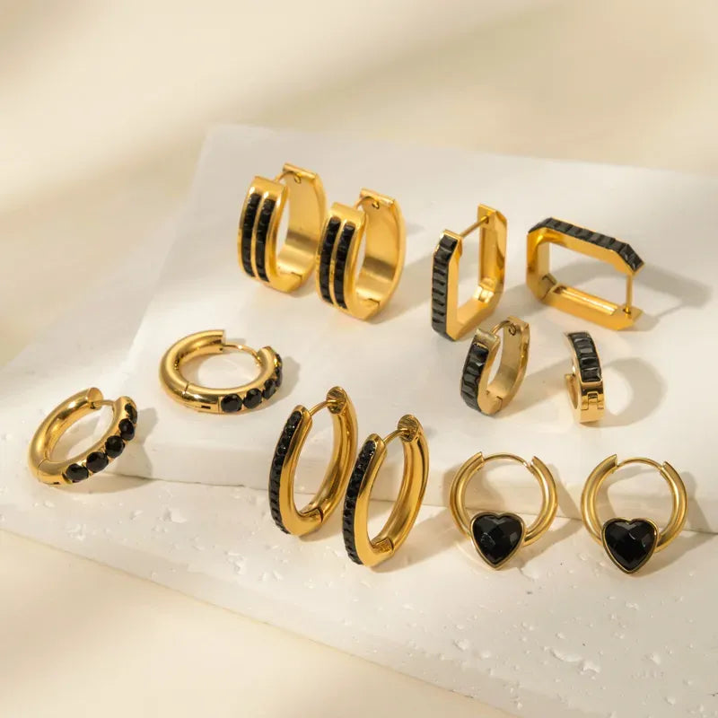 Oval Heart Shape Plating Inlay Stainless Steel Zircon 18K Gold Plated Earrings