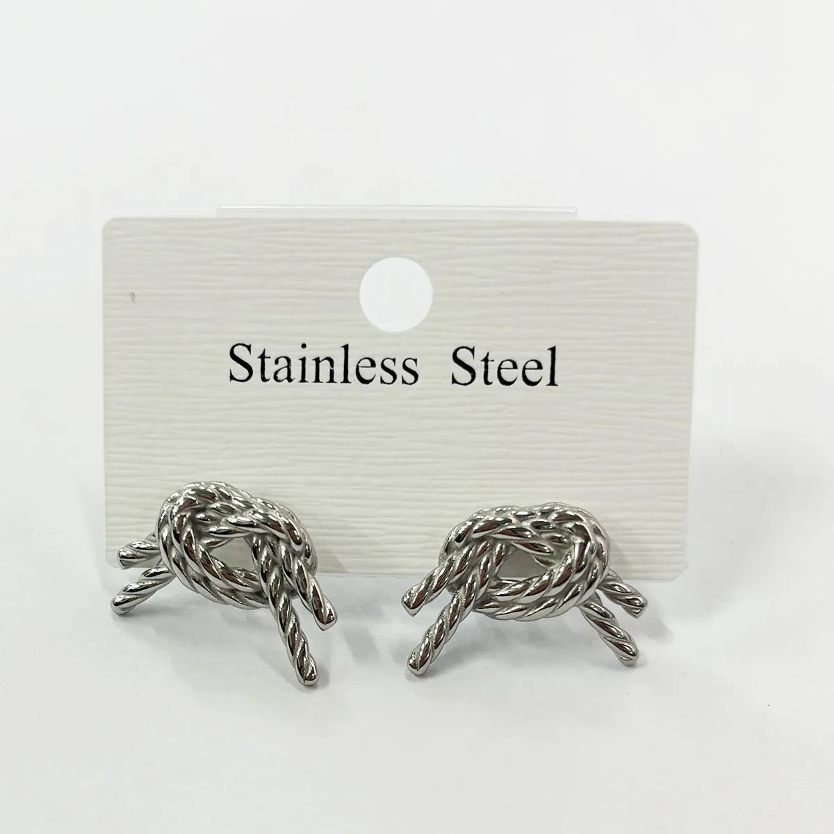Make your ears the center of attention with these charming ear studs featuring a simple yet stylish knot design. Crafted from durable 304 stainless steel and plated in 18K gold, these studs are perfect for adding a touch of elegance to any outfit.