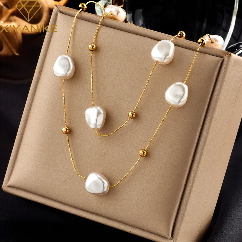 Pearl 304 Stainless Steel 18K Gold Plated Stainless Steel Necklace